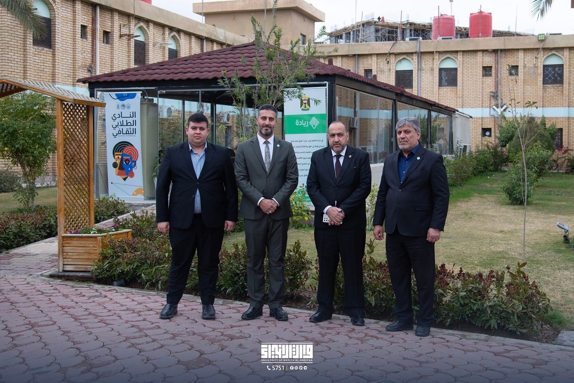 جولة ميدانية لمسؤول مبادرة ريادة في مجلس الوزراء ورئيس جامعة وارث الأنبياء للاطلاع على مشروع ريادي مبتكر أجرى الدكتور حسين فلامرز، مسؤول مبادرة ريادة في مجلس الوزراء، برفقة الأستاذ الدكتور إبراهيم سعيد الحياوي، رئيس جامعة وارث الأنبياء (عليه السلام)، جولة ميدانية للاطلاع على مشروع "الكورنر"، الذي أسسه خريج قسم هندسة الطب الحياتي محمد عمار.