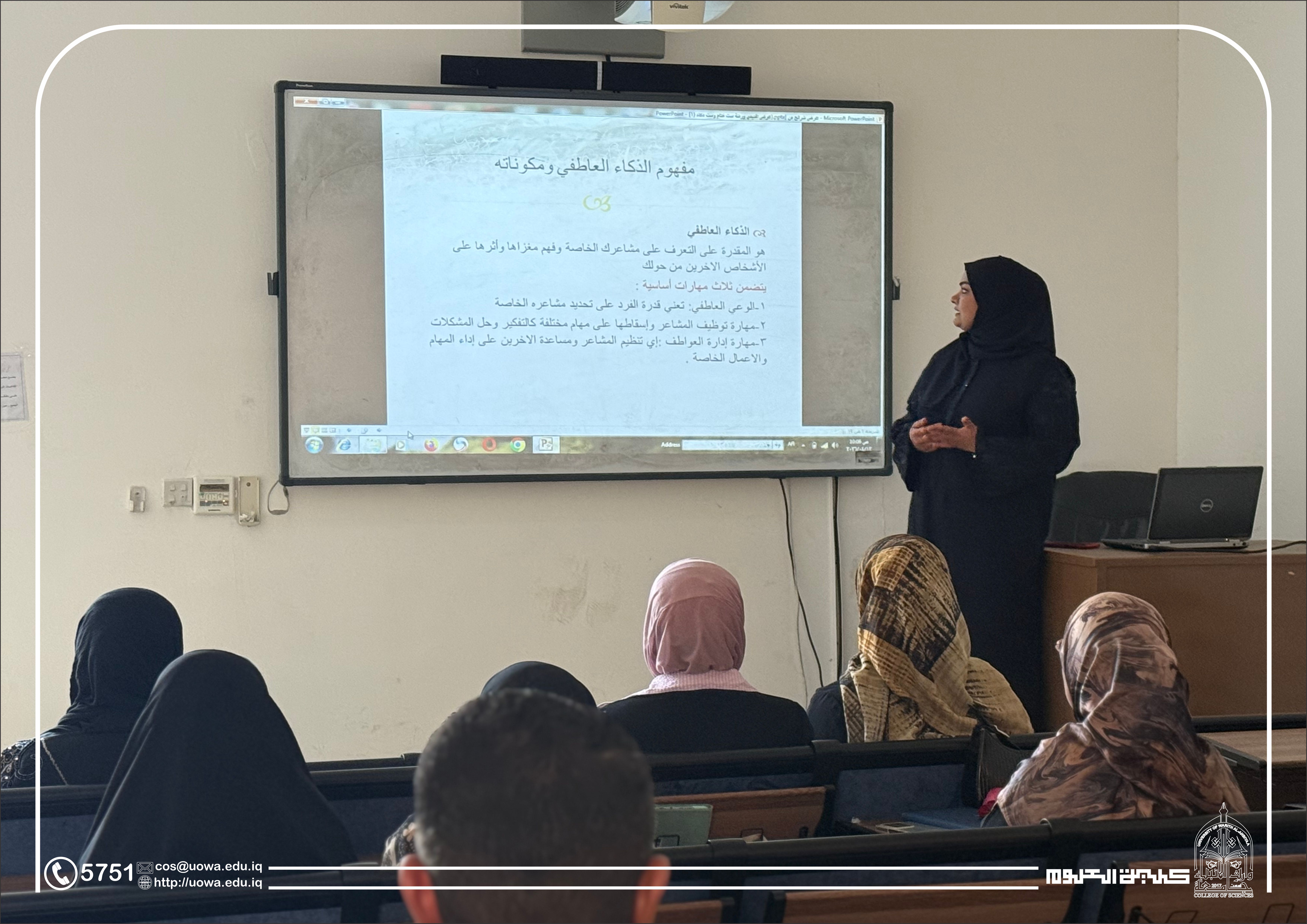 نُظِّمت ورشة تدريبية بعنوان “الذكاء العاطفي والقيادة المؤثرة للنساء في بيئة العمل”، قدّمتها المدرس المساعد ختام محمد حمزة والمدرس المساعد دعاء شاكر كاظم، بهدف تنمية المهارات القيادية وتعزيز كفاءة المرأة في بيئات العمل الحديثة.