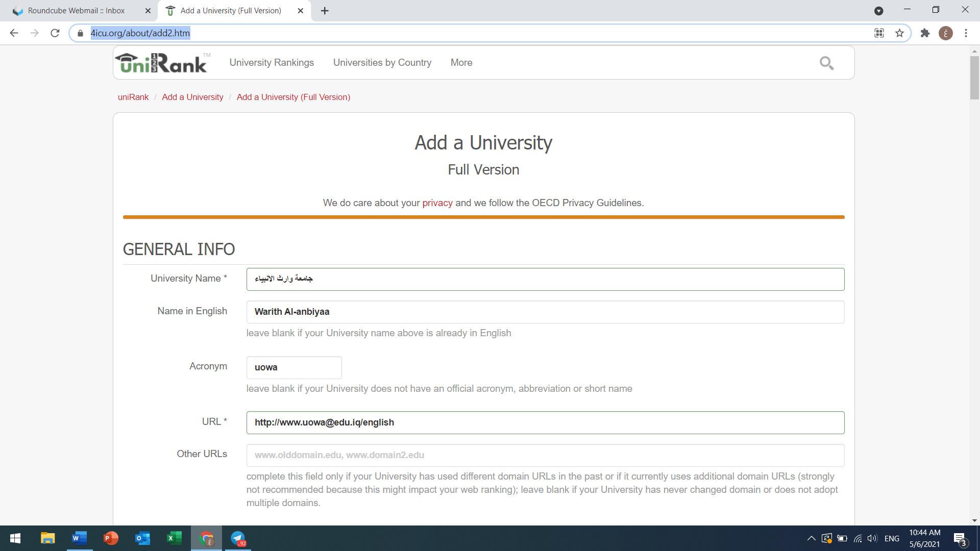 3. تم اكمال متطلبات تسجيل جامعتنا في موقغ التصنيف الاسترالي UniRank.