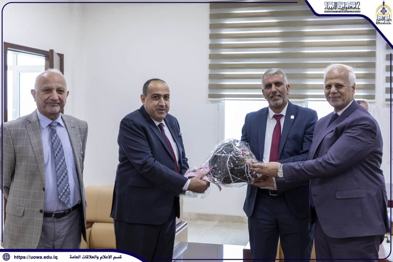 زار وفد من جامعة كربلاء ترأسه الاستاذ الدكتور باسم السعيدي رئيس الجامعة ومرافقه المساعد الاداري الاستاذ الدكتور أكرم الياسري، جامعة وارث الانبياء(عليه السلام)، لتقديم التهاني الى الاستاذ الدكتور ابراهيم سعيد الحياوي بمناسبة تسنمه منصب رئاسة الجامعة سائلين الله (عز وجل) ان يوفقه لخدمة المسيرة العلمية في بلدنا العزيز.