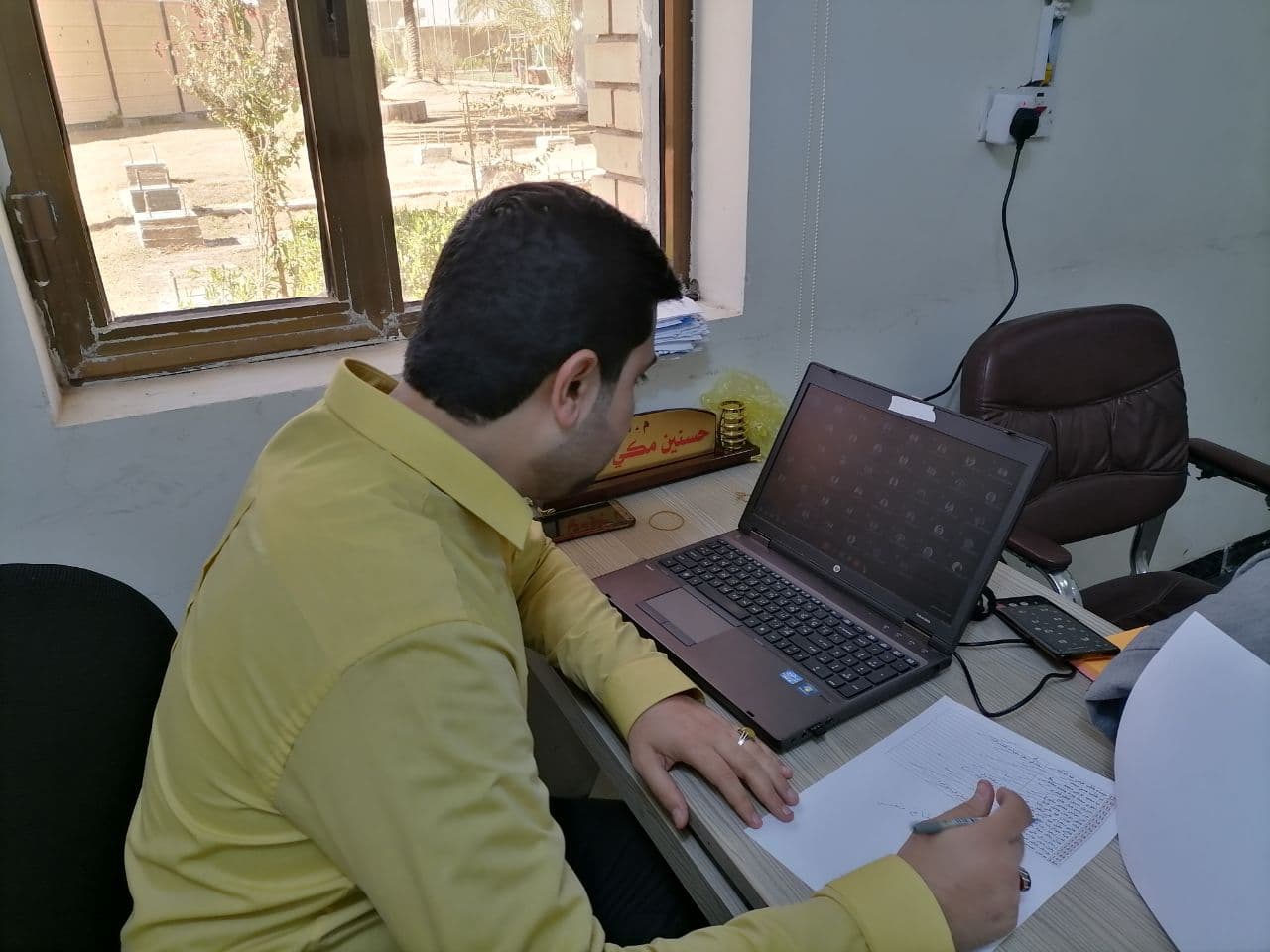 بالصور.. متابعة عميد كلية القانون في جامعة وارث الأنبياء (عليه السلام) الاستاذ المساعد الدكتور علي صاحب الشريفي لعمل المراقبات الالكترونية في الكلية.
