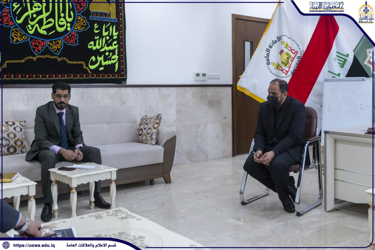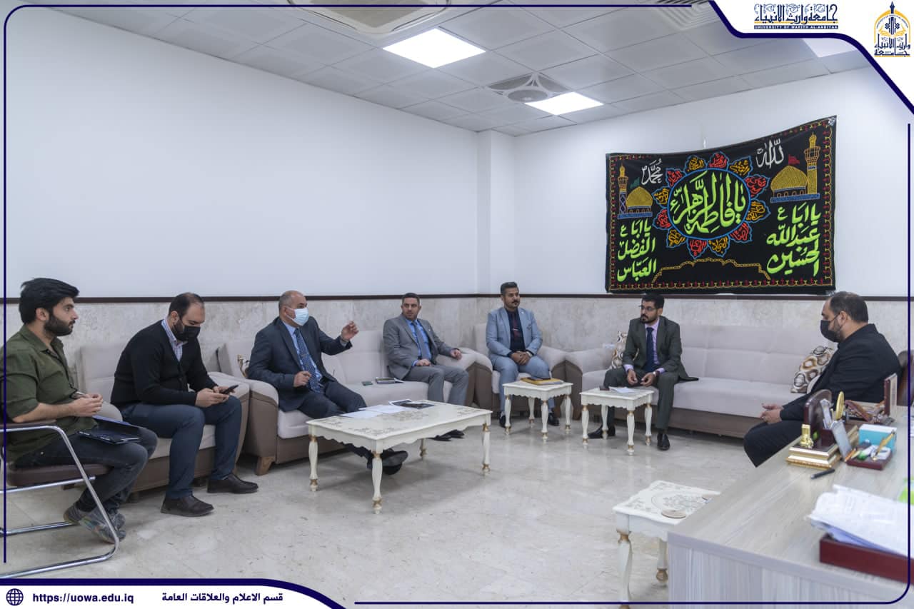 عقد السيد مساعد رئيس الجامعة للشؤون العلمية الاستاذ الدكتور عباس كاظم الدعمي اجتماعاً موسعاً للوقوف على الاستعدادات الجارية (لمسابقة وارث الانبياء للتميز البحثي الاولى)، وذلك بحضور السيد عميد كلية التمريض والسادة رؤساء أقسام الشؤون العلمية، والاعلام، ومركز الحاسبة الالكترونية.