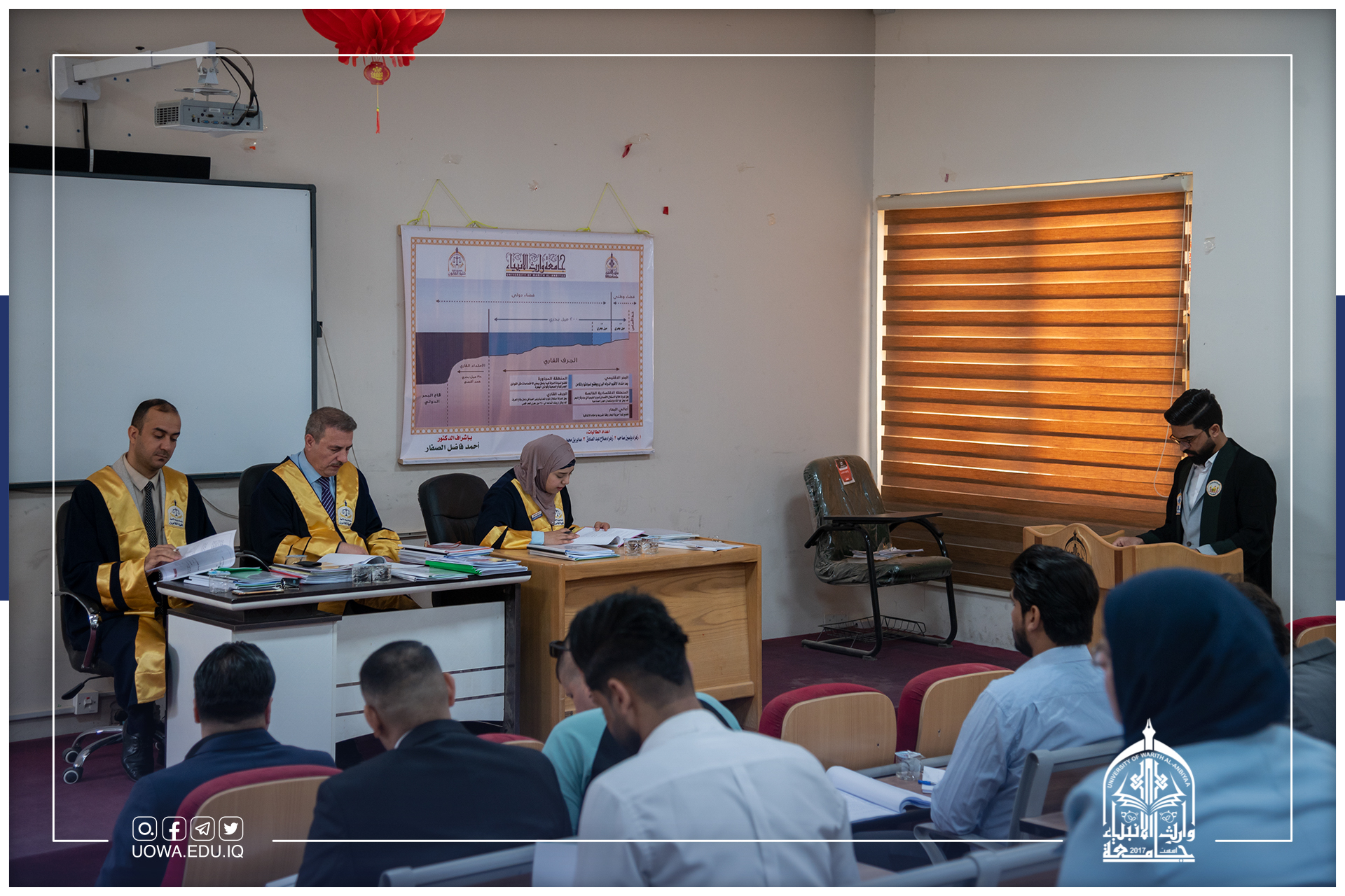 بالصور.. عمادة كلية القانون في جامعة وارث الانبياء (عليه السلام) تناقش بحوث تخرج طلبة المرحلة الرابعة، بحضور لجنة علمية مشكلة من قبل عمادة الكلية للإشراف على المناقشة.