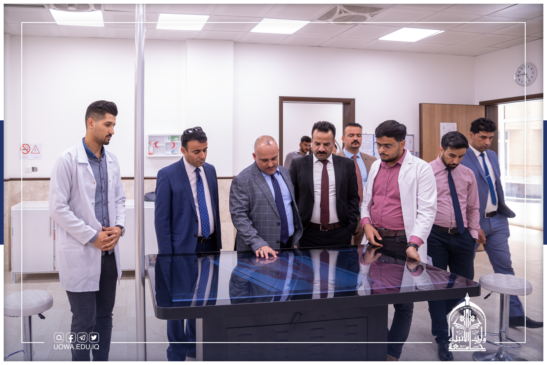 وتفقد الوفد المختبرات العلمية للجامعة بهدف تنفيذ برنامج تقييم اجراءات وتدابير الامن والسلامة البايلوجية في المختبرات والمواقع ذات الصلة بالانشطة البايلوجية لغرض تنفيذ قانون هيئة الرقابة الوطنية .