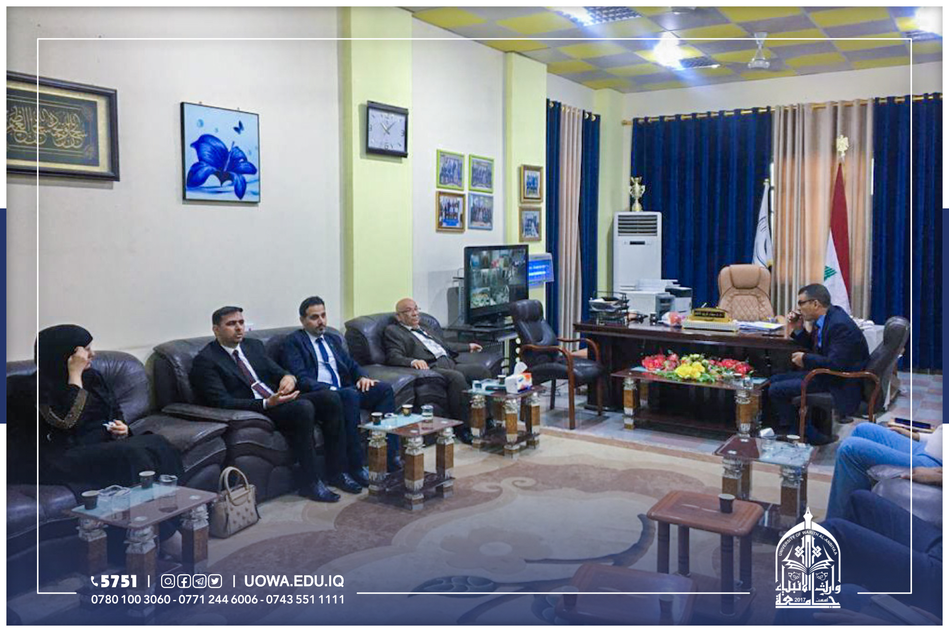 وجاءت هذه الزيارة لمناقشة التحضيرات الجارية لعقد مؤتمر علمي مشترك بين الكليتين، ومناقشة البحوث العلميه المشتركة وحث الباحثين على النشر في المجلات العلمية الرصينة، وفي نهاية الاجتماعات زار الوفد رئيس جامعة المثنى الاستاذ الدكتور عامر العطوي الذي رحب بهم وابدى تعاونه التام لانجاح المؤتمر .
