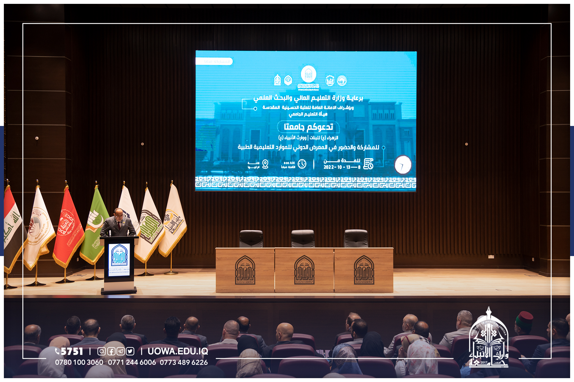 واوضح السيد رئيس الجامعة الاستاذ الدكتور ابراهيم الحياوي خلال كلمة القاها امام الحضور: ان هذا المعرض يعتبر الاول من نوعه على مستوى العراق، الذي اقيم بدعم من العتبة الحسينية المقدسة للنهوض الفعلي بالواقع الطبي في العراق عبر استقطاب الشركات الرائدة في المجلات الطبية والبحثية التخصصية، والكفاءات الاكاديمية.