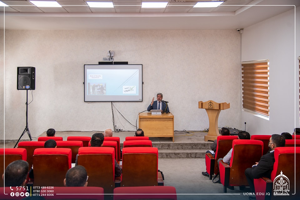 برعاية السيد رئيس الجامعة الاستاذ الدكتور ابراهيم سعيد الحياوي، أقام قسم ضمان الجودة والاداء الجامعي ورشة عمل بعنوان (معايير الاعتماد الهندسي) ألقاها ا.م.د. علي ناجي عطية عضو المجلس العراقي لاعتماد التعليم الهندسي، إذ تضمنت الورشة مناقشة معايير الاعتماد الهندسي الوطني وسبل تطوير ادارة البرامج الدراسية بما يحقق متطلبات سوق العمل وفقا للمعايير العالمية.