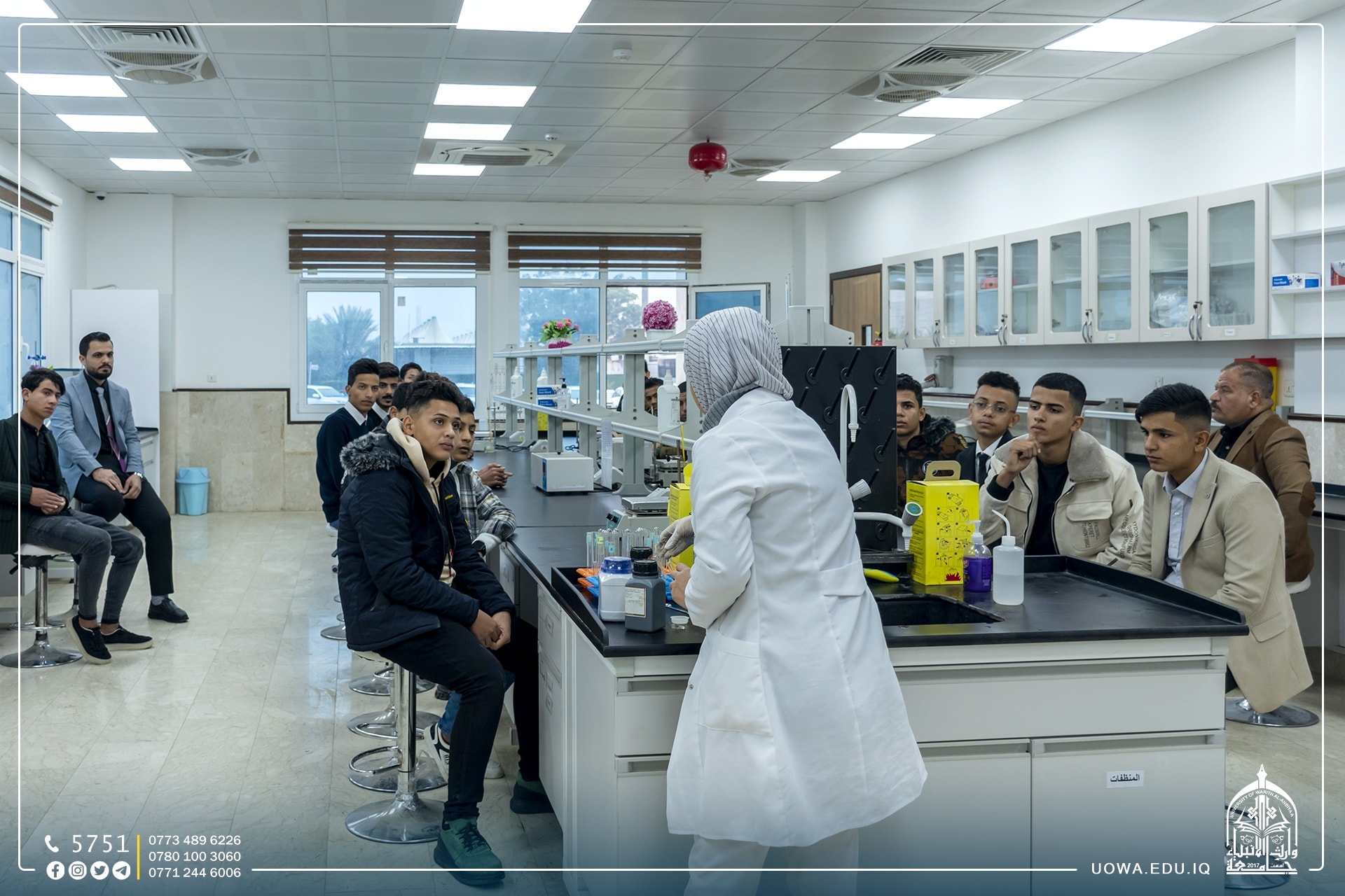 إذ قام الطلبة بجولة في أروقة كليات واقسام الجامعة، وزيارة المختبرات العلمية فيها كما تم عمل تجربة كيميائية للطلاب في مختبرات كلية الطب، بالإضافة إلى إجراء مسابقة معرفية.