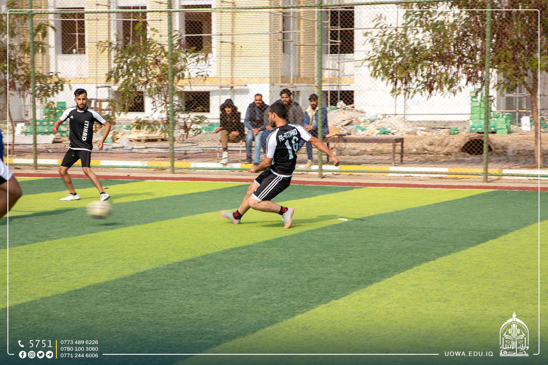 استمرار منافسات بطولة الاساتذة وموظفي جامعة وارث الانبياء(عليه السلام) لخماسي كرة القدم، التي يقيمها قسم النشاطات الطلابية بالتعاون مع مركز رعاية الشباب.