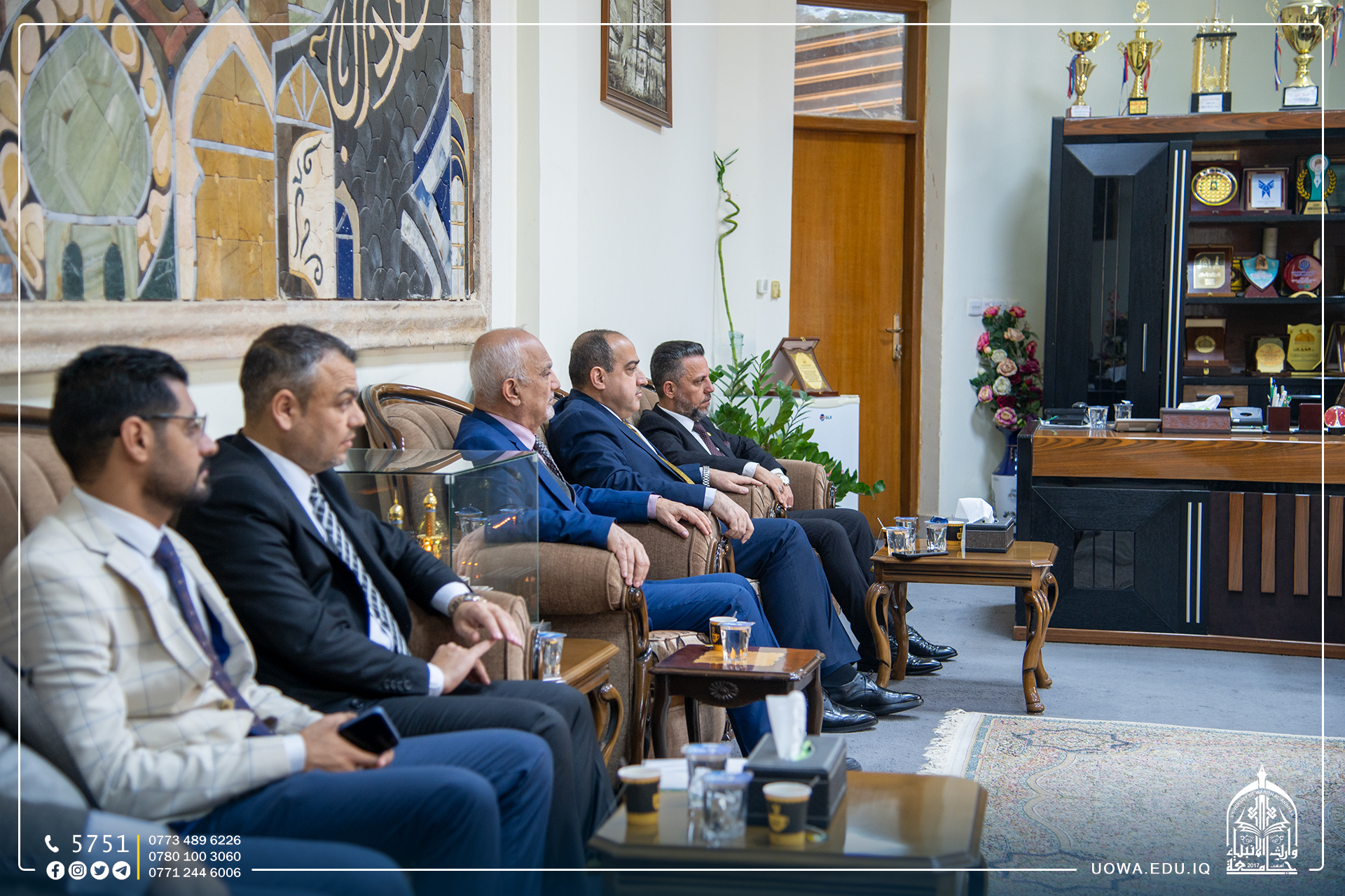 من أجل تعزيز التعاون العلمي في بنشر البحوث الرصينة بين جامعتي كربلاء ووارث الانبياء (عليه السلام)، زار السيد رئيس جامعة وارث الانبياء الاستاذ الدكتور ابراهيم سعيد الحياوي يرافقة المساعد الاداري الاستاذ الدكتور نوفل الاعرجي والوفد المرافق لهما جامعة كربلاء.