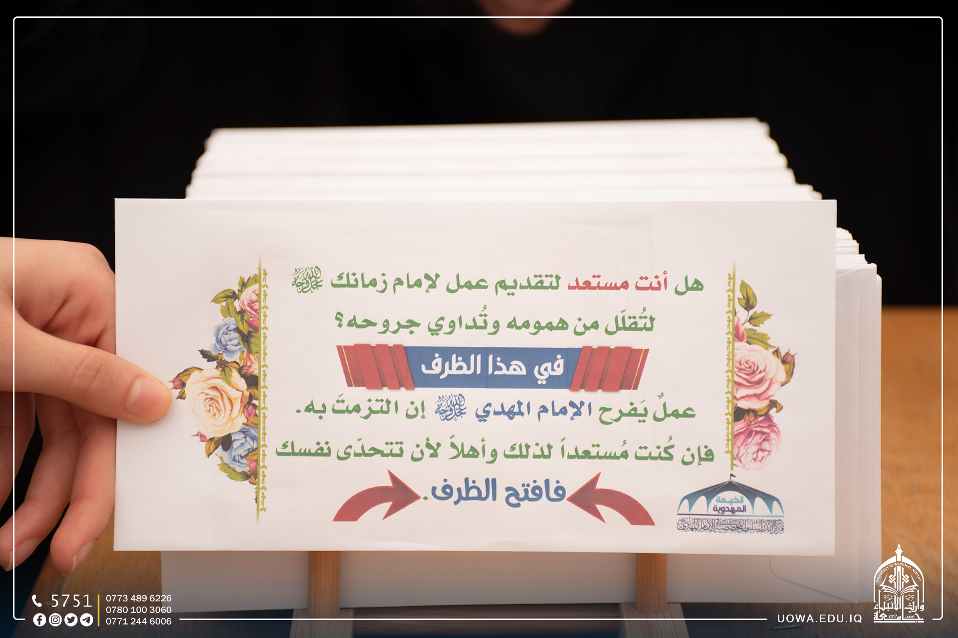 وتضمنت الخيمة عدد من المحاور منها الحوار المفتوح، ومعرض كتاب متخصص بالقضية المهدوية، وفقرة اختبر معلوماتك وغيرها من الفعاليات الثقافية المرتبطة بالقضية المهدوية.