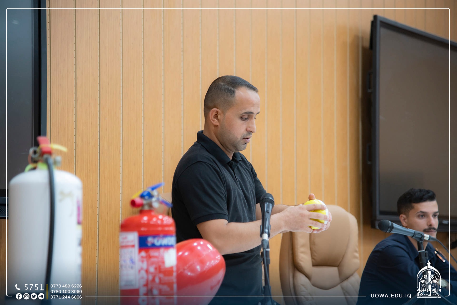 أقام مركز التعليم المستمر، وبالتعاون مع قسم ديوان الجامعة دورة تدريبية للسلامة العامة واطفاء الحرائق والوقاية منها، قدمها مسؤول شعبة الدفاع المدني حسين منديل.