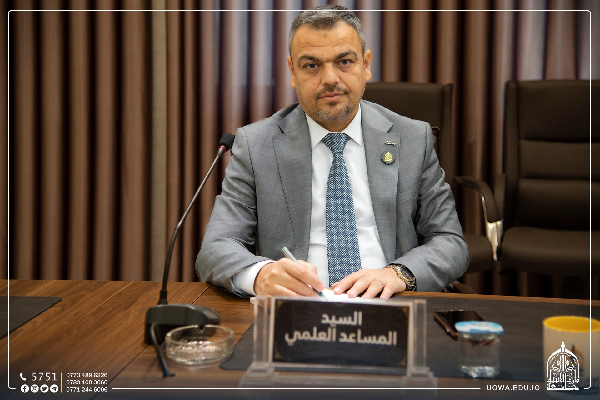 مجلس جامعة وارث الانبياء(عليه السلام) يعقد جلسته الاعتيادية برئاسة الاستاذ الدكتور ابراهيم الحياوي وعضوية السادة مساعدي رئيس الجامعة للشؤون الإدارية والعلمية والسادة عمداء الكليات لمناقشة جملة من القرارات التي تخدم الجامعة وطلبتها الاعزاء.