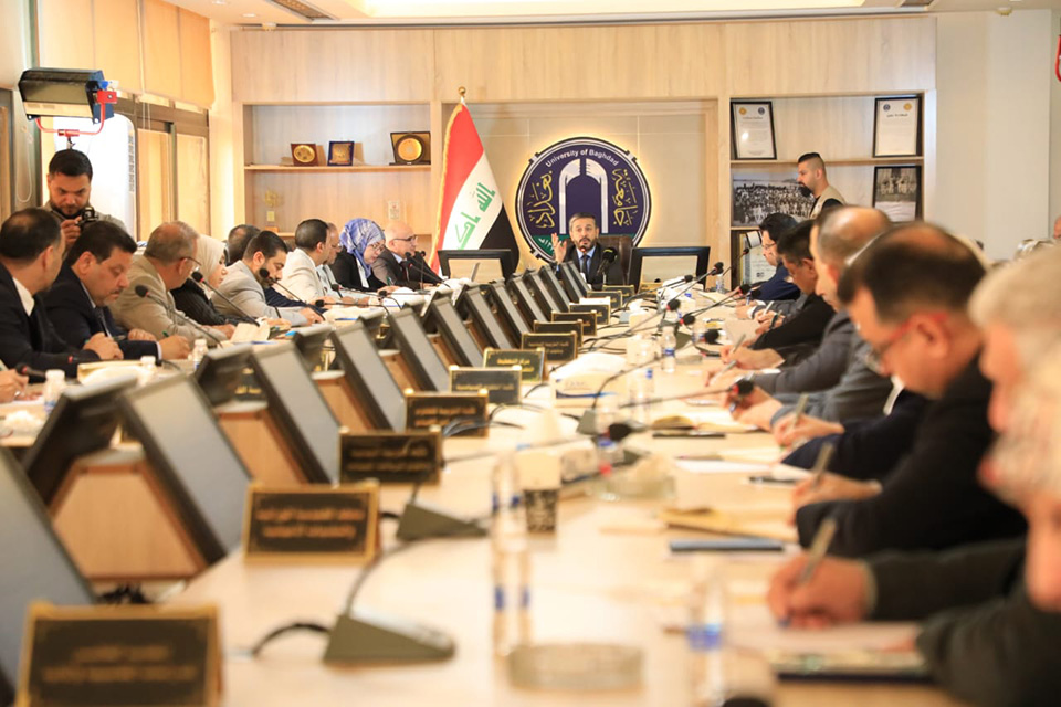 عقد وزير التعليم العالي والبحث العلمي الدكتور نعيم العبودي اجتماعا مع مجلس جامعة بغداد وحث على تحفيز الطاقات العلمية للهيئات التدريسية وتوظيف الإمكانات البشرية في مسار جودة التدريس وتطوير البحث العلمي وتعزيز خدمة المجتمع.