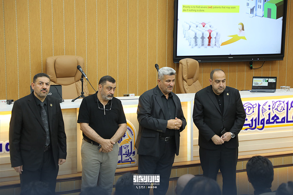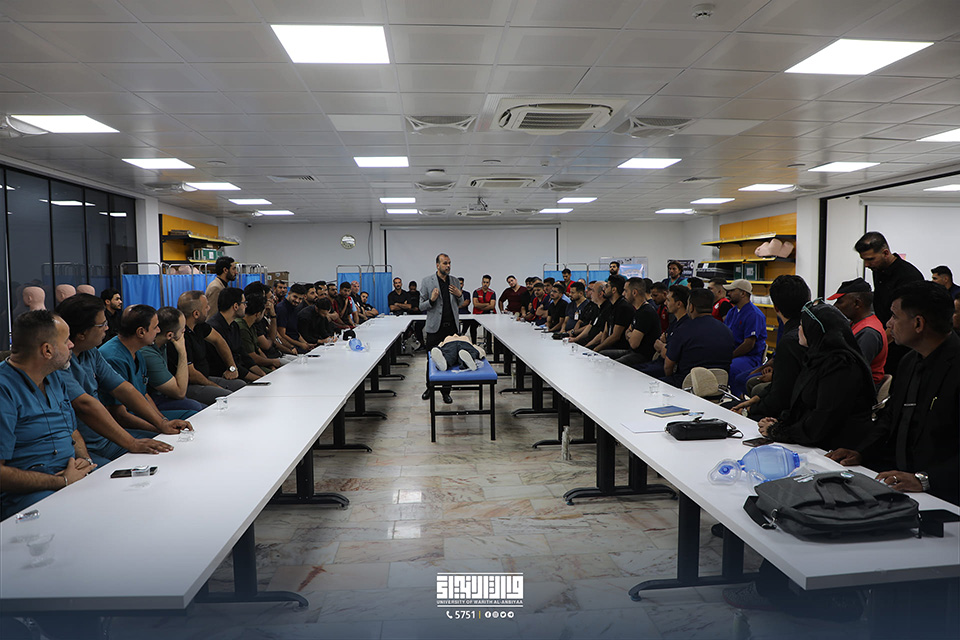 نظمت كلية الطب في جامعة وارث الأنبياء (عليه السلام) بالتعاون مع "المركز الإقليمي لطب الطوارئ" ورشة تدريبية حول الإسعافات الأولية المتقدمة (BLS) في مختبرات الكلية، بحضور رئيس الجامعة الأستاذ الدكتور إبراهيم الحياوي وعميد كلية الطب الأستاذ الدكتور علي عبد سعدون الغزي ومدير مركز طب الطوارئ الدكتور فاضل عكله الربيعي.