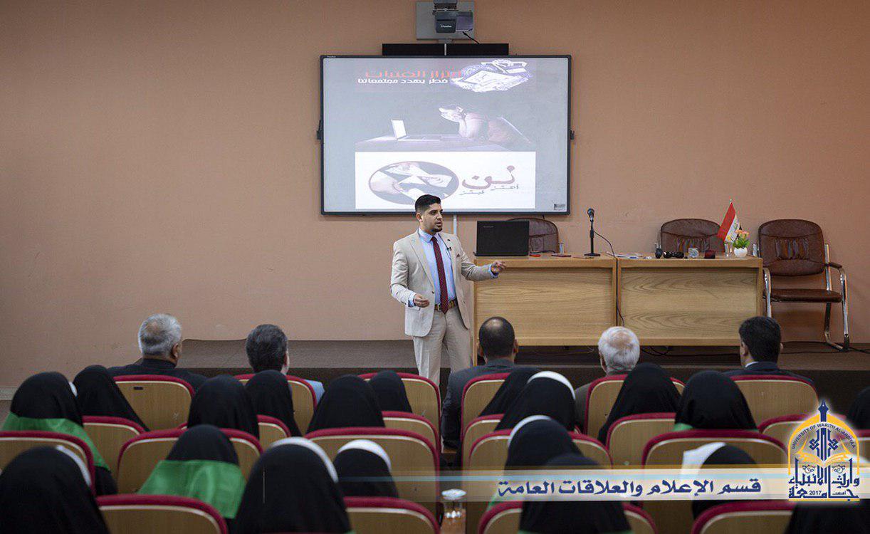 بالتعاون بين قسم النشاطات الطلابية في جامعة وارث الانبياء (عليه السلام) ومؤسسة الامام الرضا (عليه السلام) الخيرية وبالتنسيق مع مديرية الامن الوطني في كربلاء وبحضور الاستاذ الدكتور طالب حسن موسى رئيس الجامعة والسيد المساعد العلمي اقيمت يوم الاربعاء 24/4/2019 ندوة تثقيفية حول جريمة الابتزاز الالكتروني التي انتشرت وبشكلاً كبير في الاونة الاخيرة