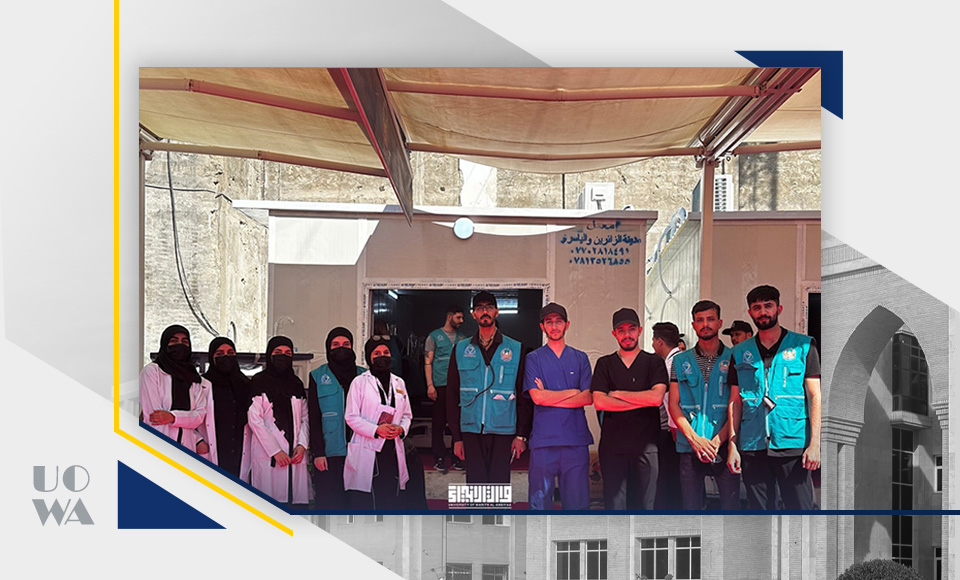 بالتعاون مع مفارز هيئة الصحة والتعليم الطبي في العتبة الحسينية المقدسة، قدم طلبة كلية الطب والتمريض في جامعة وارث الأنبياء (عليه السلام) خدمات طبية وصحية لزائري الإمام الحسين (عليه السلام) وأخيه أبو الفضل العباس (عليه السلام) في ذكرى دفن الأجساد الطاهرة في الثالث عشر من محرم الحرام.