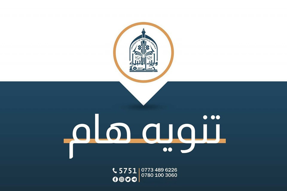 تعلن جامعة وارث الانبياء(عليه السلام)/ كلية الإدارة والإقتصاد عن حاجتها الى درجات وظيفية (متقاعد، أو غير متعين في دوائر الدولة، ولايمتلك كود تعيين على مجلس الخدمة الإتحادي).