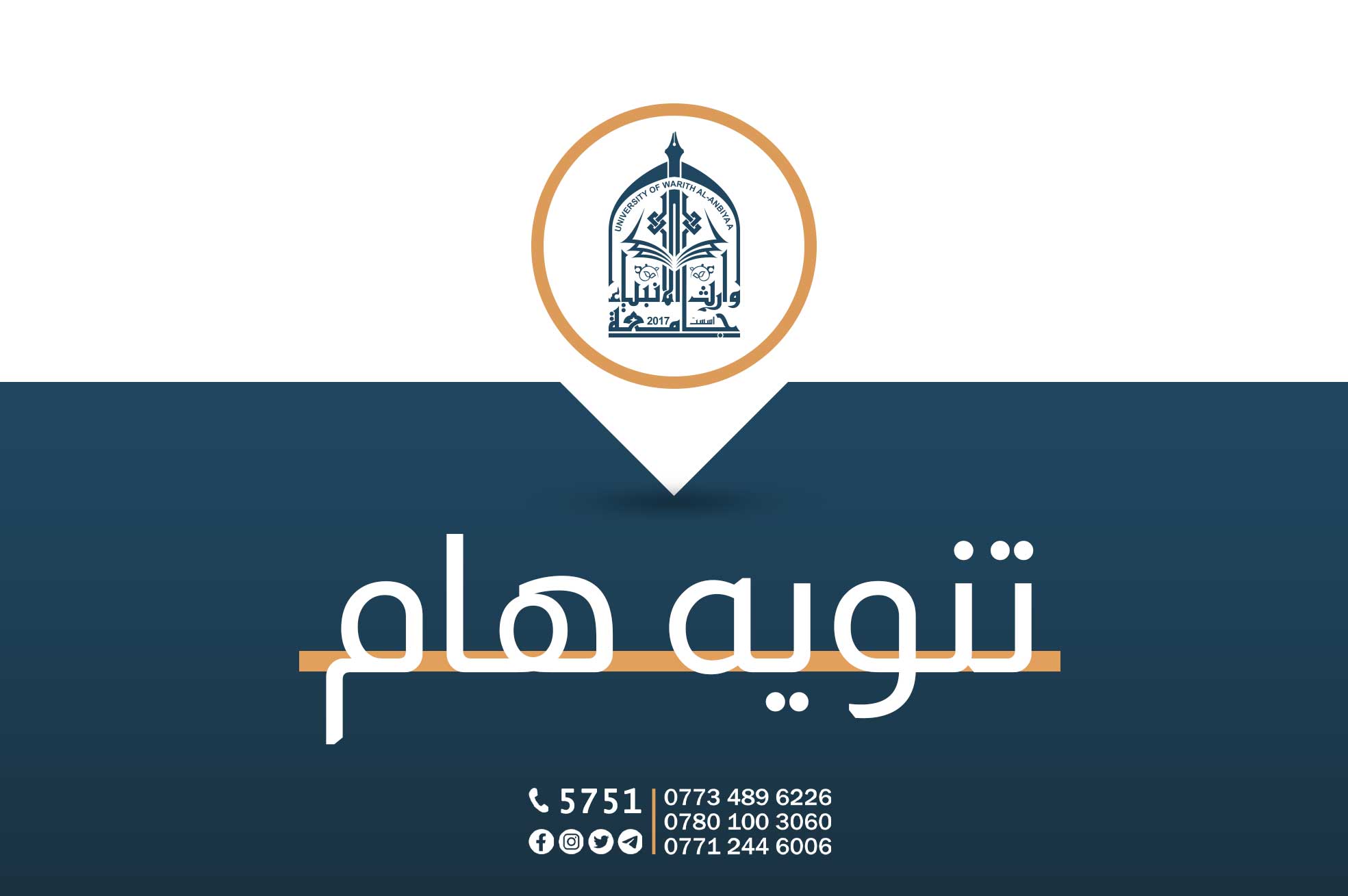 تعلن جامعة وارث الأنبياء(عليه السلام) عن توفر فرص عمل لحملة الشهادات العليا( الدكتوراه او الماجستير) من المتقاعدين او غير المتعينين.