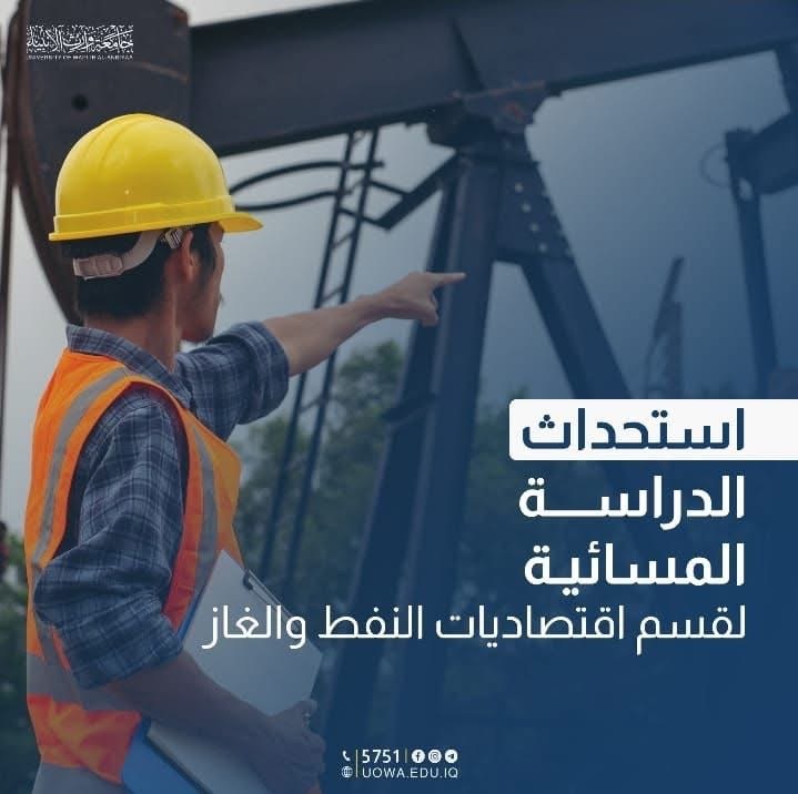 يسر جامعة وارث الانبياء(عليه السلام) ان تعلن عن استحداث ( الدراسة المسائية ) لقسم اقتصاديات النفط والغاز في كلية الإدارة والاقتصاد.