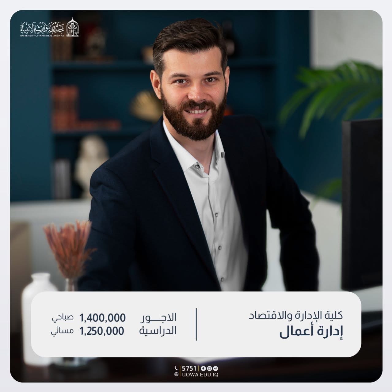 في كلية الإدارة والاقتصاد – قسم إدارة الأعمال جامعة وارث الأنبياء حيث نُخرّج قادة المستقبل القادرين على رسم ملامح الاقتصاد وإدارة المؤسسات بكفاءة وابتكار.