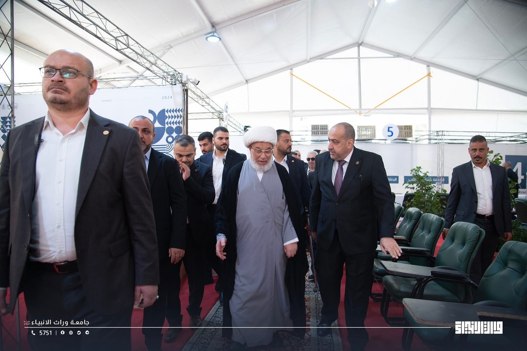 ممثلُ المرجعيةِ الدينيةِ العليا، سماحة الشيخ عبد المهدي الكربلائي (دام عزّه)، يزورُ خيمةَ التسجيل في جامعةِ وارث الأنبياء (ع)