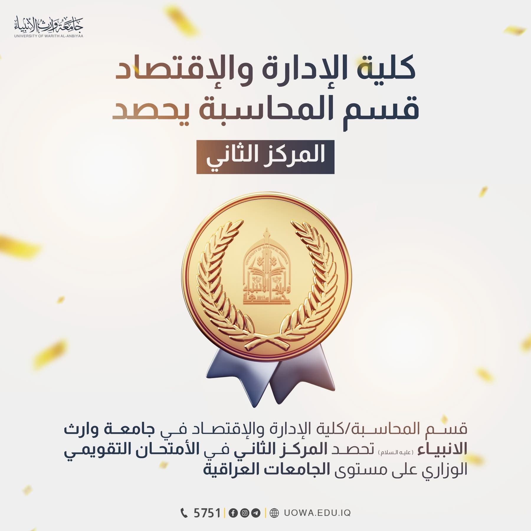 انجاز اكاديمي جديد بتصدر قسم المحاسبة في جامعة وارث الأنبياء(ع)