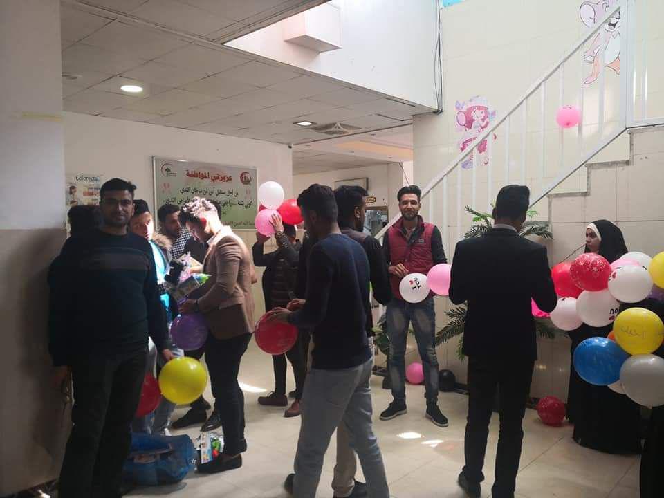 ضمن النشاطات اللاصفية وانشطة خدمة المجتمع لكلية الادارة والاقتصاد زار استاذة الكلية و مجموعة من طلبة قسم المحاسبة مستشفى الامام الحسين عليه السلام التعليمي لمرضى السرطان وامراض الدم وذلك لادخال البهجة والسرور على قلوب محاربي السرطان سائلين المولى عزوجل الشفاء العاجل