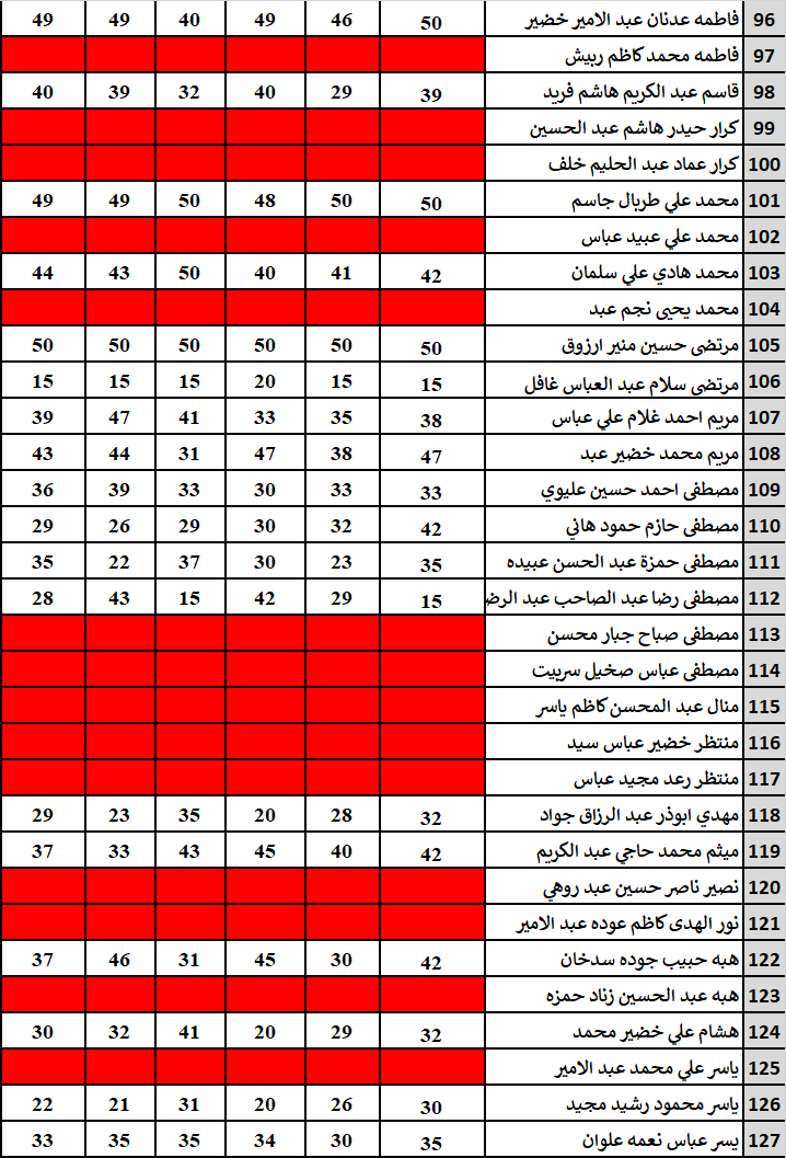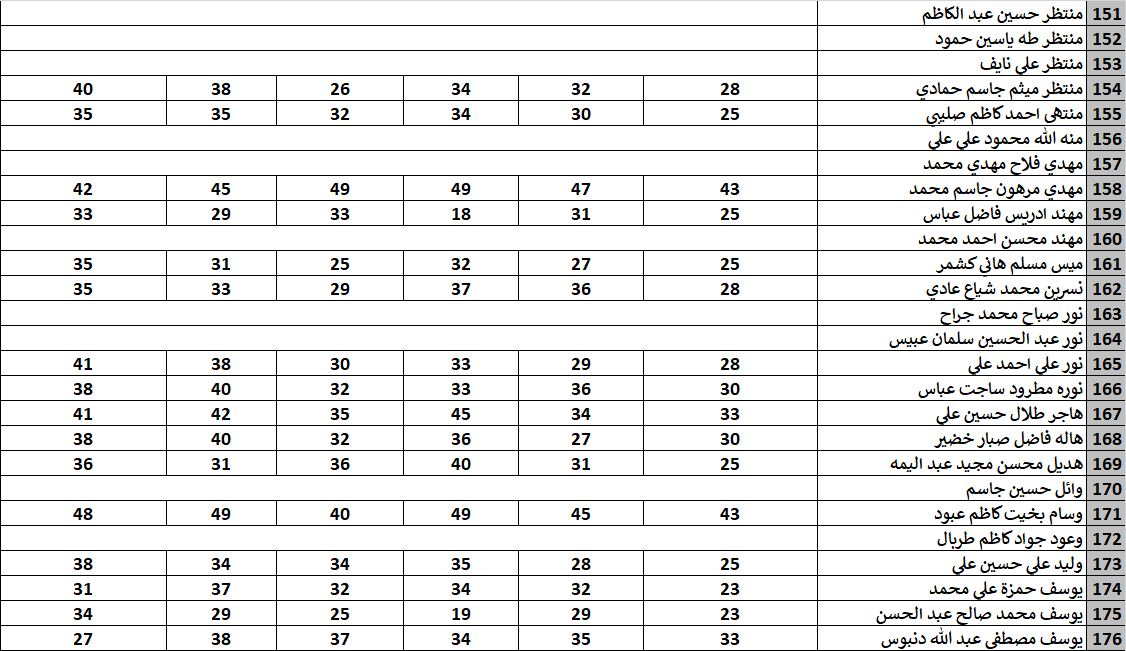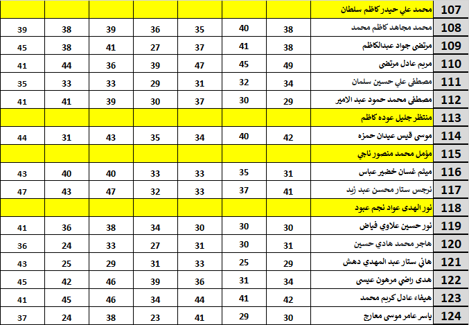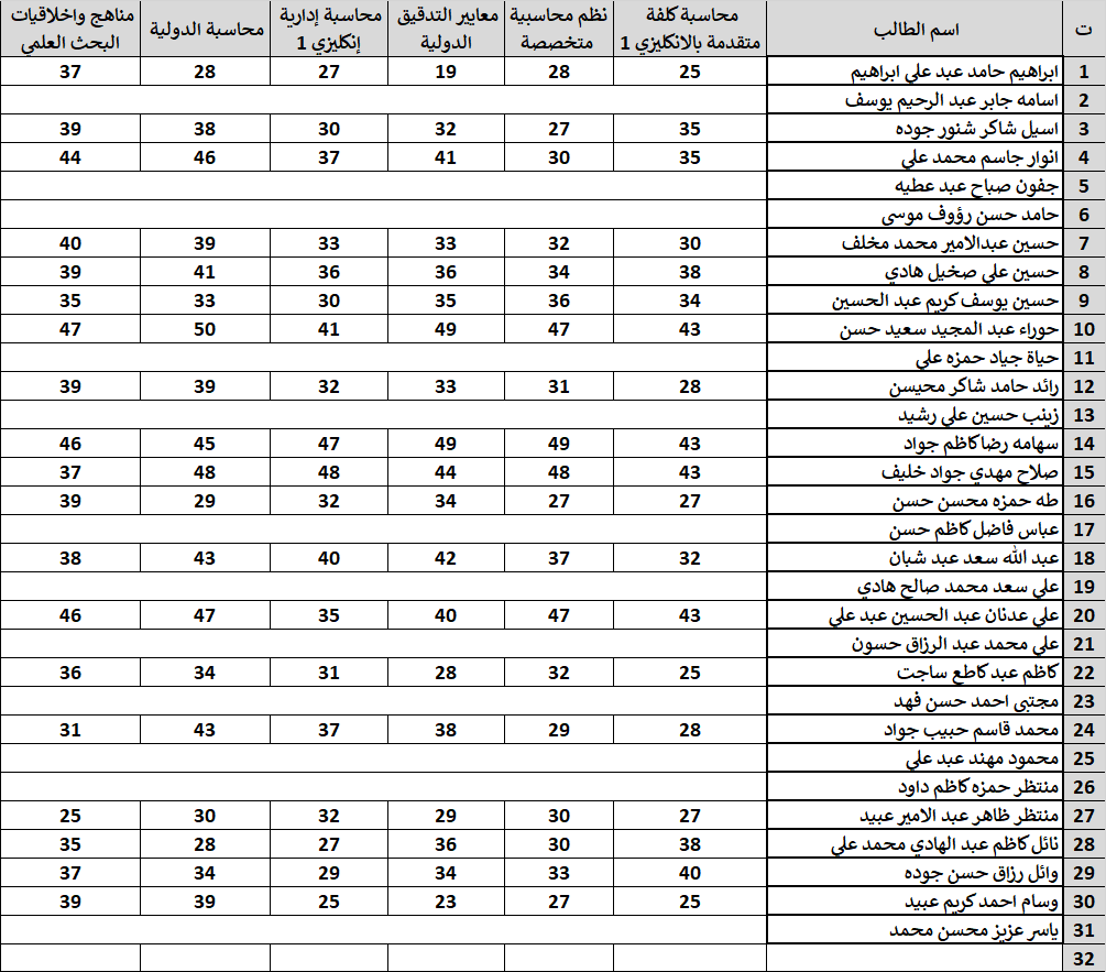 درجات السعي السنوي لطلبة قسم المحاسبة / المرحلة الثانية صباحي