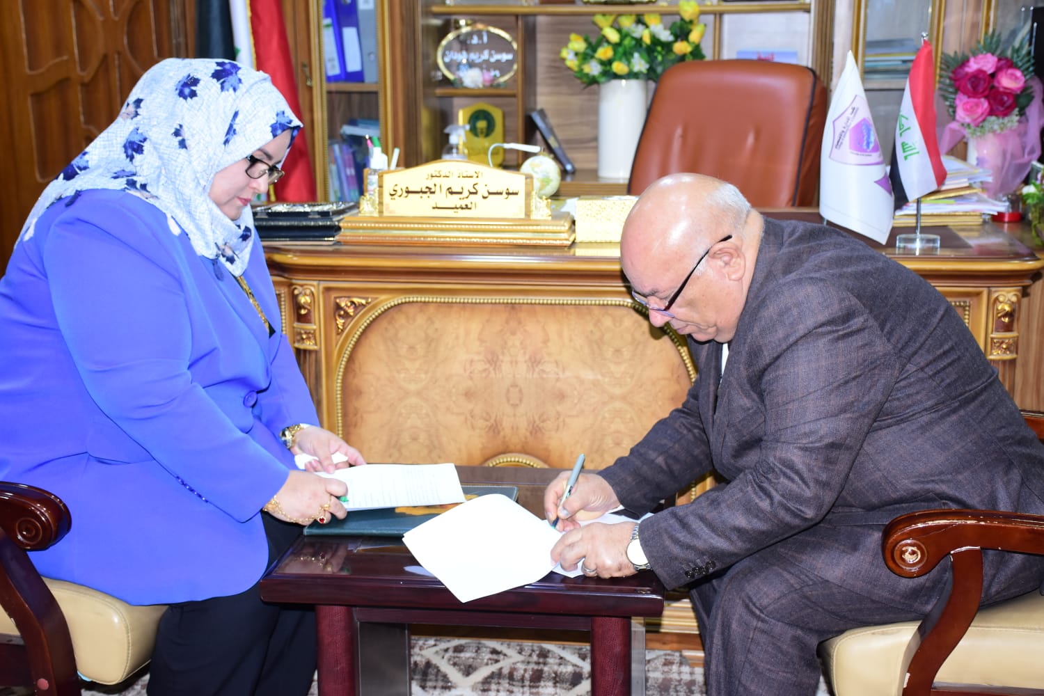 استقبلت الاستاذ الدكتور سوسن كريم الجبوري عميد كلية الإدارة والاقتصاد جامعة القادسية؛ وفد كلية الادارة والاقتصاد جامعة وارث الأنبياء برئاسة أ.د عوادالخالدي عميد الكلية وبعضويه كل من:
