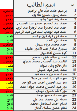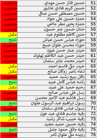نتائج امتحانات الكورس الاول قسم المحاسبة المرحلة الاولى للدراسة الصباحية والمسائية