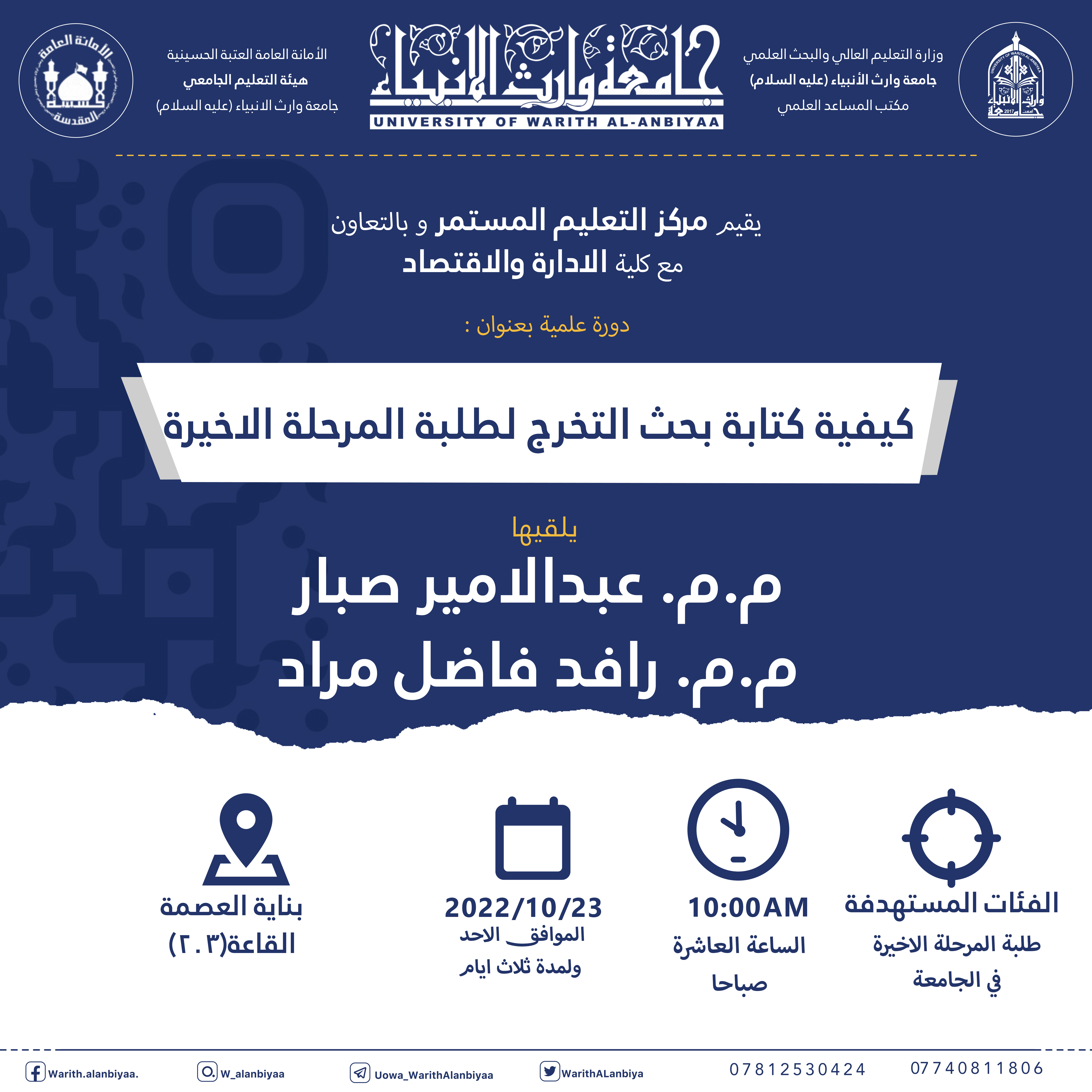 اعلان اقامة دورة كيفية كتابة بحث التخرج