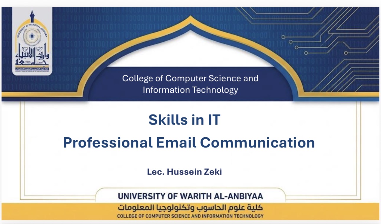 نظّمت كلية علوم الحاسوب وتكنولوجيا المعلومات في جامعة وارث الأنبياء (عليه السلام) ورشة تدريبية بعنوان “استخدام البريد الإلكتروني”.