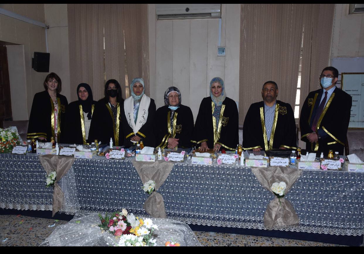 اجريت مناقشة أطروحة الدكتوراه بعنوان (Role of novel biochemical parameters(Pentraxin and Gelsolin) in prediction of Cardiovascular diseases in Iraqi patient with Rheumatoid arthritis) للباحثة مينا يحيى عبد/ التدريسية في قسم الطب الحياتي/ كلية الهندسة في اختصاص كيمياء حياتية سريرية / كلية الطب جامعة بغداد يوم الخميس المصادف٣١/٣/٢٠٢٢ وحصلت الباحثة على تقدير امتياز.