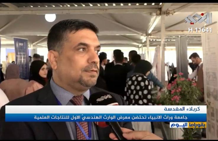 التقت قناة النعيم الفضائية بالسيد عميد كلية الهندسة الاستاذ المساعد الدكتور حسين هادي العوادي ضمن تغطيتها لمعرض وارث الهندسي الاول  للنتاجات العلمية الذي اقيم في جامعة وارث الانيياء (ع) و تحدث السيد عميد كلية الهندسة عن مشاريع تخرج الطلبة في جميع الاقسام الهندسية و كذلك عن اهميتها حيث ان المعرض يهدف لأستثمار الطاقات و تقديم الدعم الكامل لهم للاستمرار بنتاجاتهم العلمية و كذلك لتطويرها الى براءات اختراع حيث يعتبر هذا المعرض هو المعرض الاول لمشاريع التخرج حيث حرصت جامعة وارث الانبياء من خلال الجهة المؤوسة المتمثلة بالعتبة الحسينية المقدسة و رئاسة الجامعة الموقرة على الدعم المستمر و المتواصل لطلبتها من خلال انشاء هكذا معارض حيث ان المشاريع المشاركة بالمعرض قاربت الثمانين نتاجاً علمياً تخصصياً تراوحت بين تطبيقات علمية و نظرية و نتاجات علمية هندسية متنوعة منها في مجال هندسة الطب الحياتي و الهندسة المدنية اضافةً الى هندسة التبريد و التكييف من اجل الحصول على برائة الاختراع .