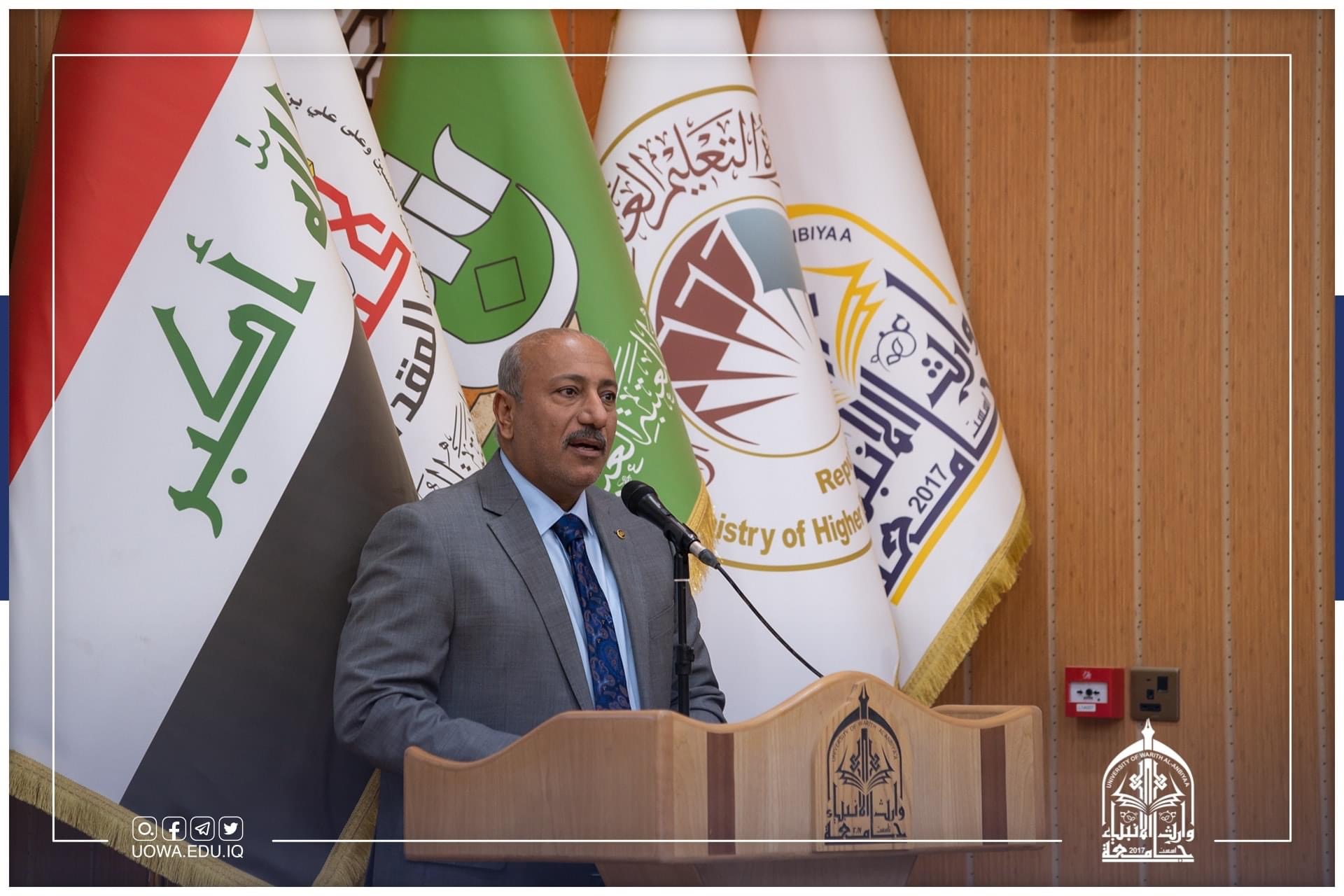 وتحدث السيد رئيس الجامعة الاستاذ الدكتور ابراهيم الحياوي خلال كلمة القاها امام الحاضرين " ان جامعة وارث الانبياء(عليه السلام) قد اخذت على عاتقها تبني هذا النهج بالتعاون مع السادة في محافظة كربلاء للنهوض بالواقع الصناعي والزراعي لما لهذه المحافظة من اهمية كبيرة على بلدنا العزيز".
