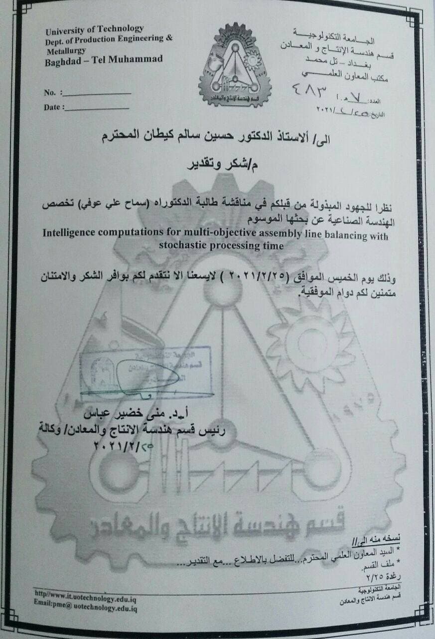 إن المجال البحثي والتطبيقي لأطروحة الدكتوراه من المجالات الحديثة لأنظمة التصنيع الذكية. وتناولت الباحثة أساليب الذكاء الاصطناعي للتخطيط لموازنة خطوط التجميع للبيئة التصنيعية الديناميكية وتحقيق الاستجابة السريعة لتلبية طلبات الشركات للمنتجات المتنوعة والمتعددة ومساعدة الإدارات العليا في الشركات لاتخاذ القرارات المناسبة والسريعة بالوقت المحدد.