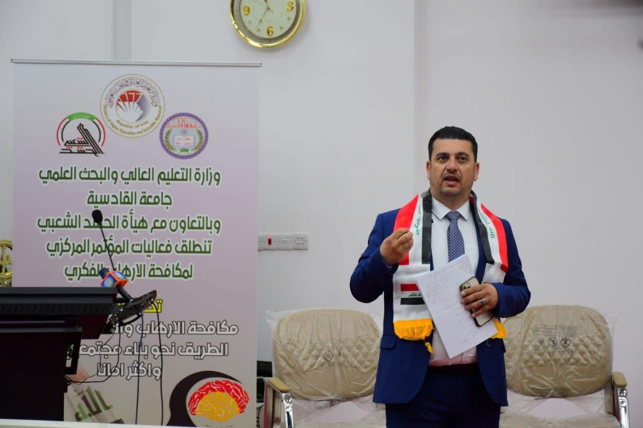 شارك التدريسي في كلية الإعلام بجامعة وارث الأنبياء م.م حازم فاضل أبو صخر، في وقائع المؤتمر العلمي المركزي الأول الذي عقدته جامعة القادسية تحت شعار (مكافحة الإرهاب والأفكار المتطرفة.. الطريق نحو بناء مجتمع مزدهر وأكثر أماناً)، وذلك بصفته مديراً للجلسة الافتتاحية لأعمال المؤتمر.