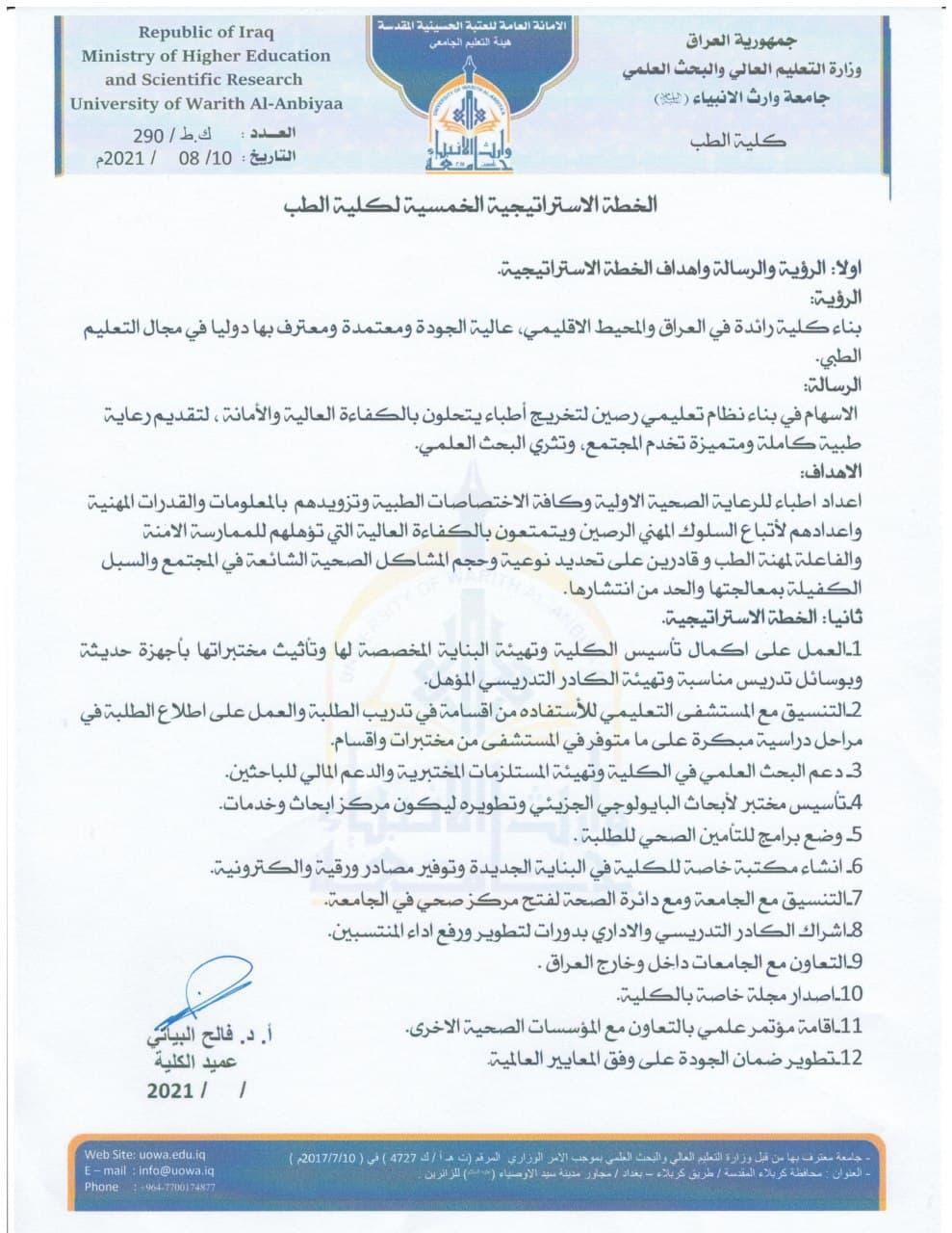 كلية الطب جامعة وارث الأنبياء عليهم السلام تستكمل الامتحانات الحضورية النهائية التي جرت بشكل جيد ولم تكن هناك اي معوقات نتيجة الجهود المتظافرة من قبل العمادة و اللجنة الامتحانية. و استمرار الامتحانات النهائية الالكترونية بأشراف السيد عميد كلية الطب الاستاذ الدكتور فالح البياتي المحترم، كما اكد على الالتزام بالوقاية الصحية من خطر انتقال العدوى حسب وتوجيهات وزارة التعليم العالي ووزارة الصحة