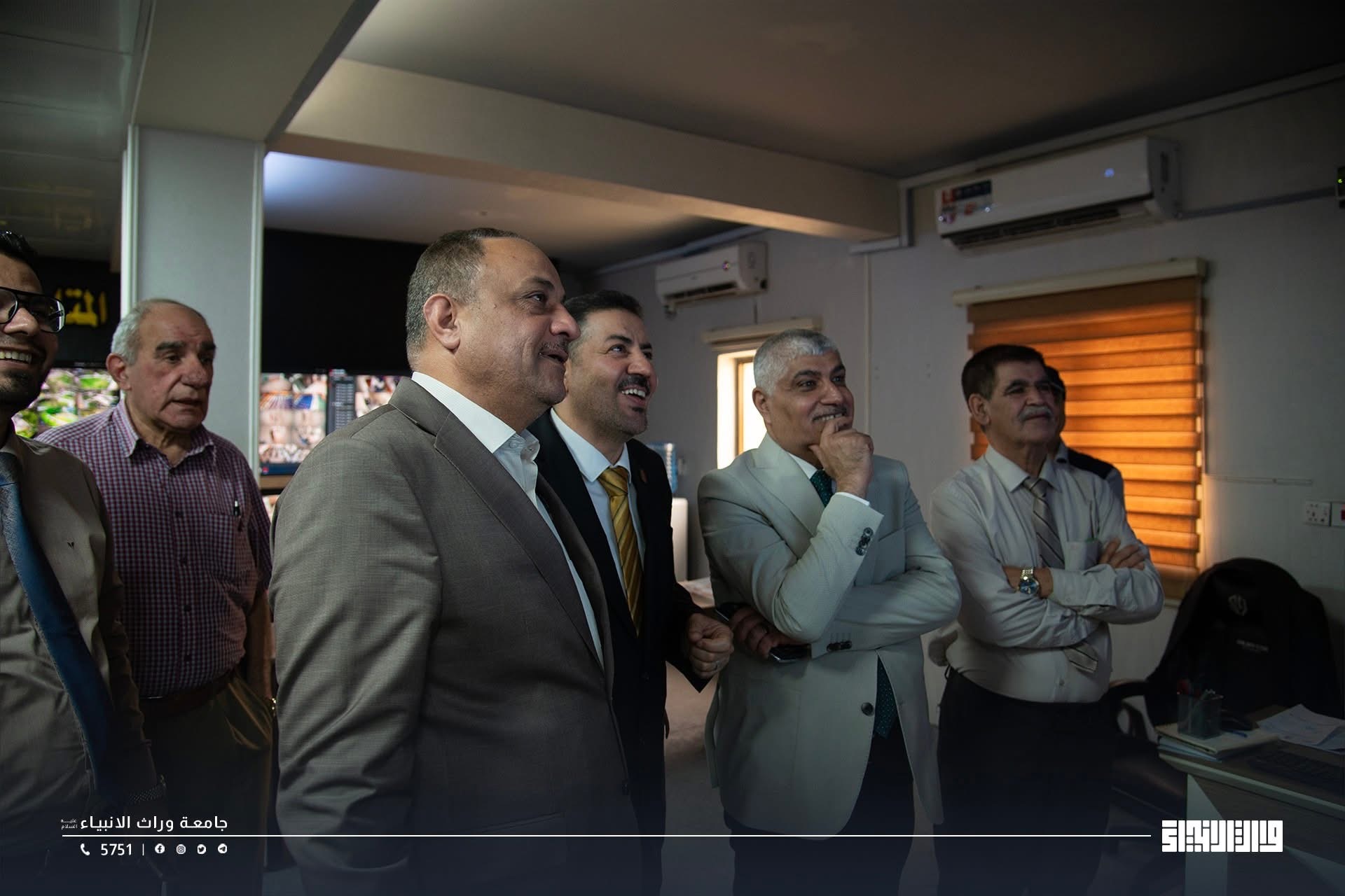 وكان في استقبال الوفدين السيد رئيس الجامعة الأستاذ الدكتور إبراهيم سعيد الحياوي والسيد عميد كلية الطب الأستاذ الدكتور علي عبد سعدون الغزي بحضور السادة المعاونين ورؤساء الفروع العلمية وتدريسيي الكلية وقد جاءت هذه الزيارة في إطار تعزيز التواصل بين الكليات الطبية والمؤسسات المهنية في العراق وبحث سبل التكامل والتعاون في مجالات التعليم الطبي والبحث العلمي والتدريب الأكاديمي والسريري.تناولت الزيارة إمكانيات تطوير التعاون العلمي بين كلية طب وارث الأنبياء وكلية طب حمورابي وفتح قنوات مشتركة للبحث وتبادل الخبرات الأكاديمية إلى جانب تنظيم فعاليات علمية وتدريبية مستقبلية تخدم تطوير المناهج ورفع كفاءة الطلبة في الجانبين النظري والعملي كما تم التباحث مع نقابة أطباء كربلاء حول آليات دعم الخريجين وطلبة المراحل السريرية من خلال التعاون في إعداد البرامج المهنية المشتركة بما يعزز من جاهزيتهم ويحقق تكاملًا فعالًا بين المؤسسة التعليمية والبيئة المهنية.وقد تضمنت الزيارة جولة في أروقة الجامعة شملت القاعات الدراسية والمختبرات العلمية ومراكز التدريب السريري ومركز الحاسبة الالكترونية ومركز الكفايات الطبية حيث اطلع الوفدان على الإمكانيات التعليمية المتطورة التي تعتمدها الكلية في تعليم وتدريب الطلبة وأبدوا إعجابهم بمستوى التجهيز والبنية التحتية والنهج الأكاديمي الذي تتبعه الكلية في تأهيل طلبتها وفق معايير الجودة الحديثة في التعليم الطبي.وفي ختام الزيارة عبّر الوفدان عن المستوى المتقدم الذي تتمتع به كلية الطب في جامعة وارث الأنبياء (ع) مؤكدين على أهمية استمرار هذا التعاون المثمر وتطويره مستقبلًا بما يسهم في تحقيق التكامل بين الجوانب الأكاديمية والمهنية ويخدم مسيرة التعليم الطبي في العراق.