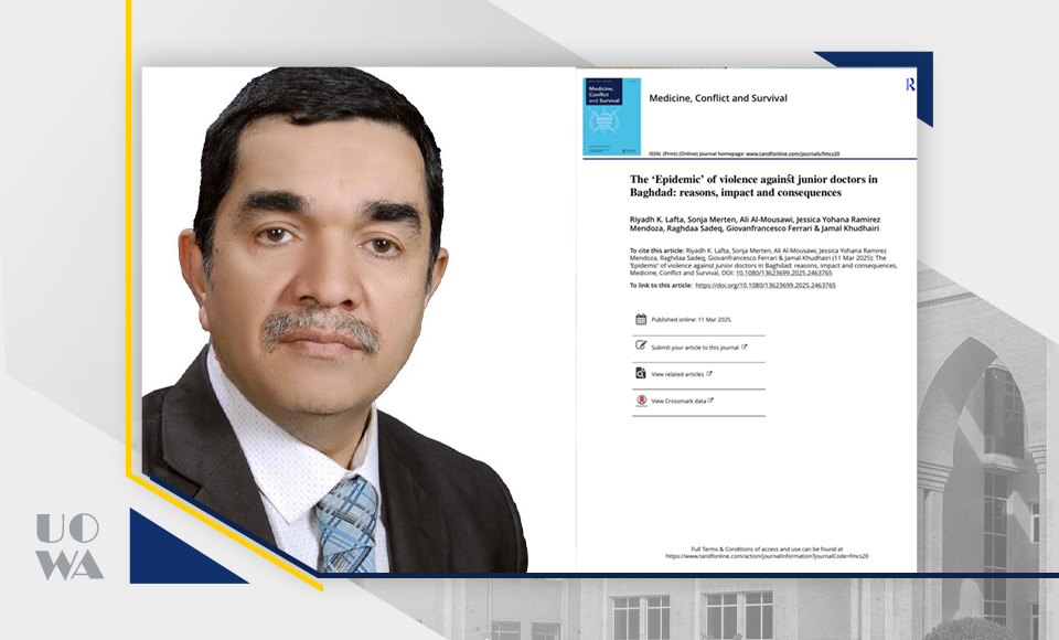 نُشر مؤخرًا بحث علمي بعنوان “وباء العنف ضد الأطباء المقيمين في بغداد: الأسباب، التأثير والنتائج” في مجلة Medicine, Conflict and Survival العالمية، بتاريخ 11 مارس 2025.