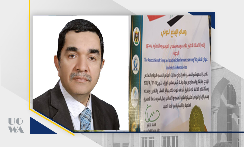 تبارك كلية الطب جامعة وارث الانبياء عليه السلام للأستاذ الدكتور علي موسى الموسوي مشاركته الفاعلة في المؤتمر العالمي الدولي السادس للإبداع والابتكار، الذي أقيم تحت شعار “بالإبداع تعمر الأوطان” للفترة من ١٦-١٧ نيسان ٢٠٢٥ على قاعة قرطبة في فندق المنصور ميليا – بغداد.