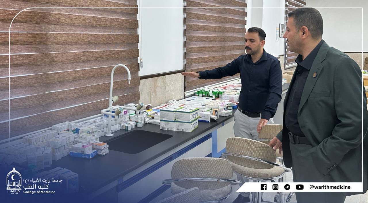 بمتابعة عميد كلية الطب الاستاذ الدكتور علي عبد سعدون في تجهيز كافة المختبرات بكافة الاجهزة والمواد استعداداً للسنة الدراسية الجديدة تم تجهيز مختبر الادوية بعدد من العينات التعليمية بعد تجهيز المختبرات بأحدث الاجهزة ومن مناشئ عالمية .