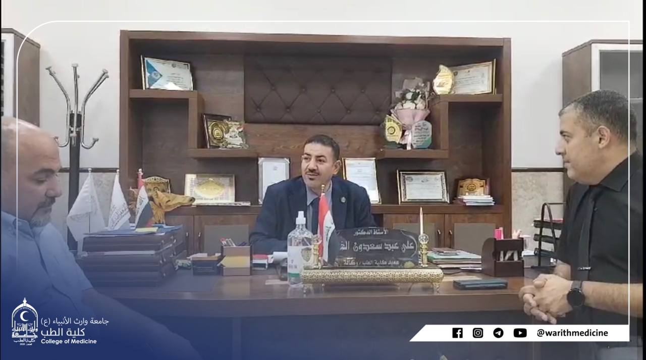 عميد كلية الطب جامعة كربلاء يستقبل عميد كلية طب وارث الأنبياء في زيارة تعاون علمي مابين الكليتين .