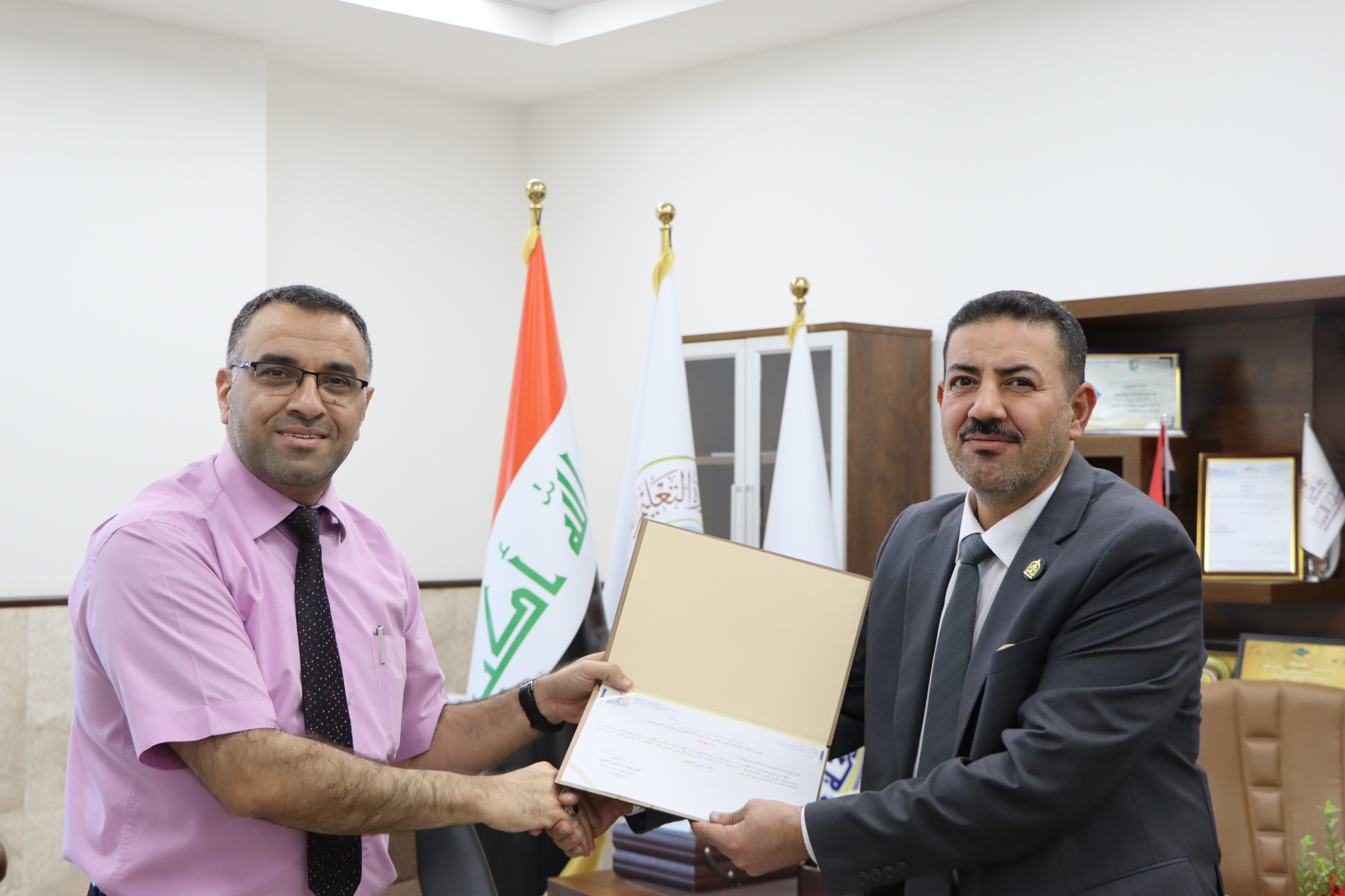 معاون العميد للشؤون الادارية رئيساً في لجنة مناقشة رسالة دكتوراه
