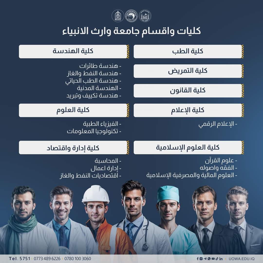#اغتنموا_الفرصة_بإختياركم_جامعة_وارث_الانبياء_عليه_السلام #جامعة_وارث_الانبياء_عليه_السلام #سندك_الحاضر_ومستقبلك_الأفضل للاستفسار يرجى الاتصال على الارقام التالية: الرقم المختصر :5751 07801003060 07734896226 موقع الجامعة-كربلاء المقدسة-طريق بغداد كربلاء