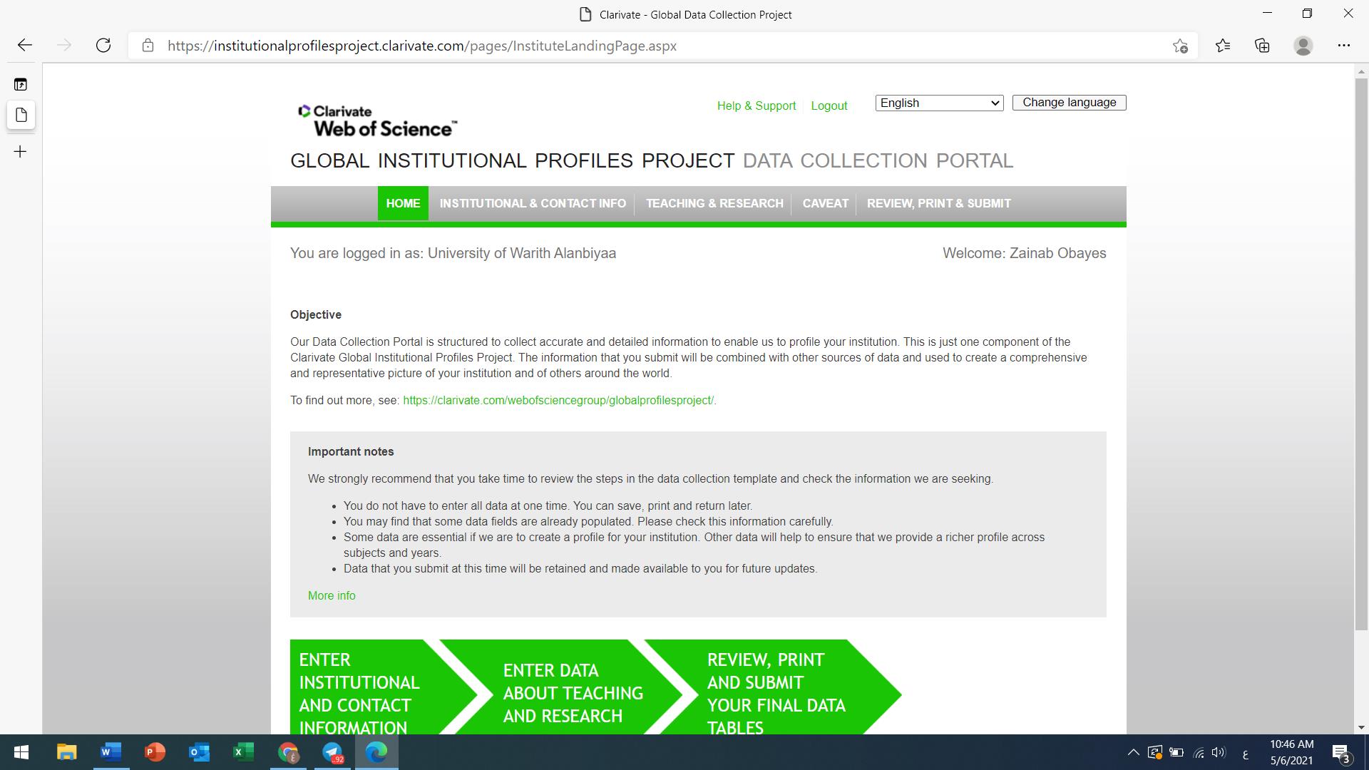 6.    تم انشاء بروفايل خاص بجامعة وارث الانبياء على صفحة التصنيف البريطاني العالمي The Times Ranking.