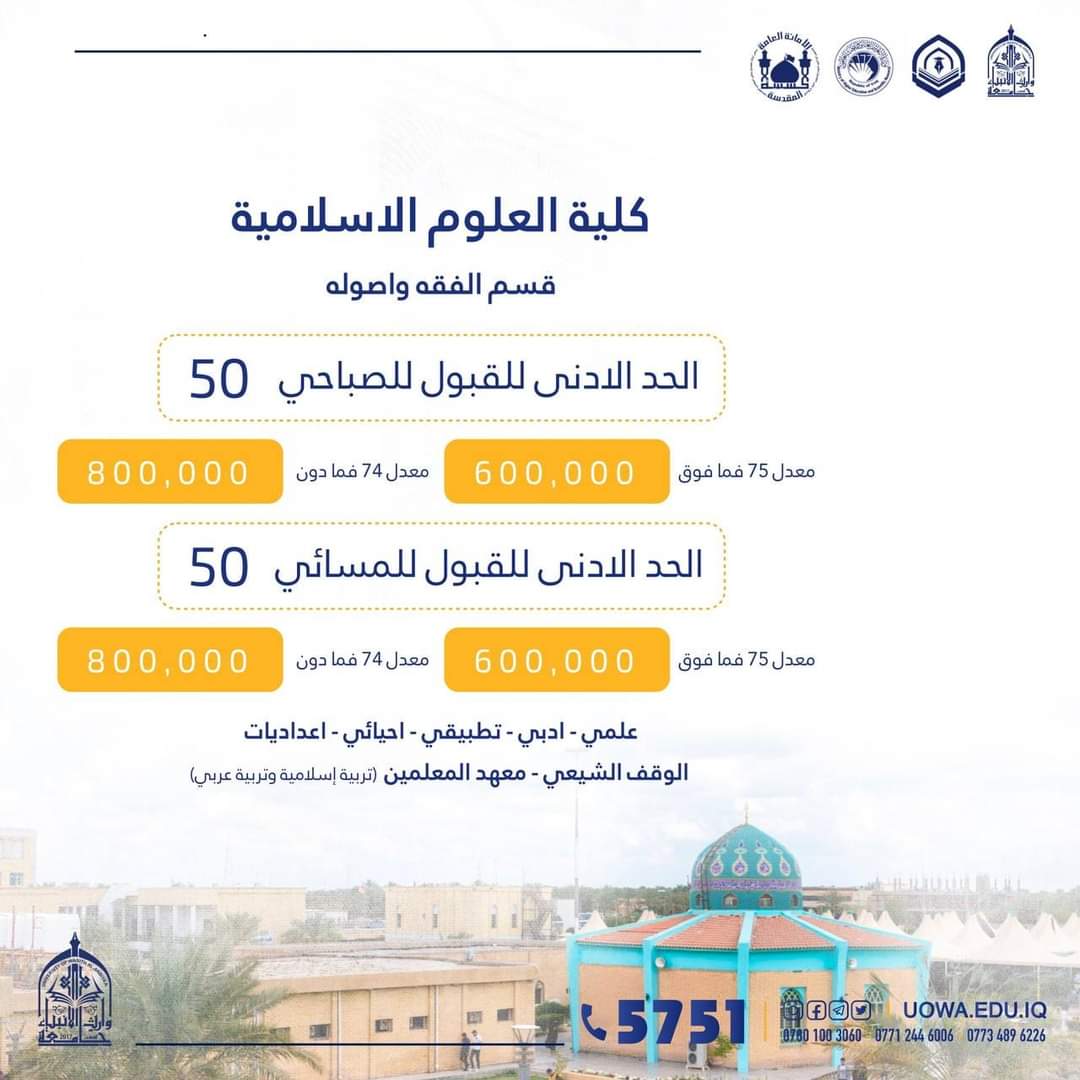 نبذه مختصره عن قسم ???? الفقه واصوله ???????????? يقبل القسم خريجي الدراسة الاعدادية( علمي- ادبي - تطبيقي- احيائي- اعداديات الوقف الشيعي- معهد المعلمين "التربية الاسلامية وقسم اللغة العربية")