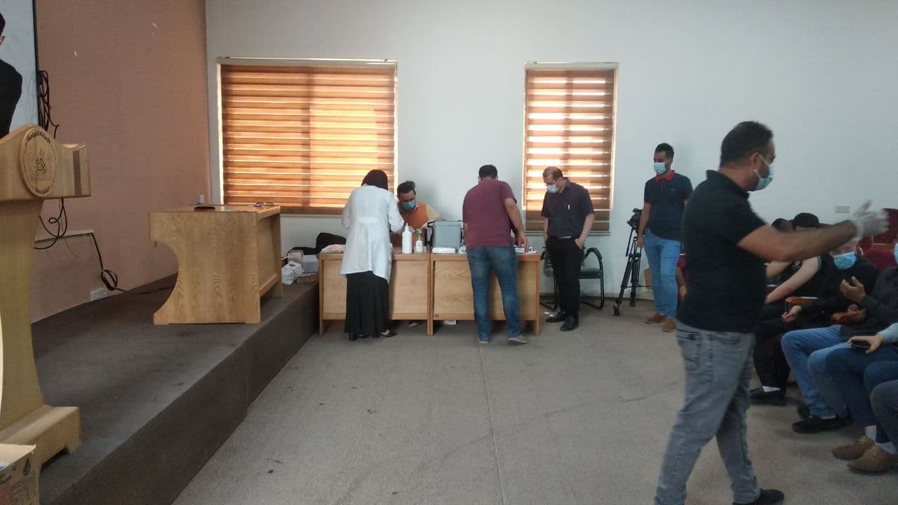 بإشراف الاستاذ الدكتور عباس الدعمي مساعد رئيس الجامعة للشؤون العلمية ومتابعة الاستاذ المساعد الدكتور مرتضى غانم الجبوري وتعاون دائرة صحة كربلاء تم اعطاء الجرعة الاولى من لقاح كورونا حيث كان هناك إقبال كبير من الملاكات التدريسية والفنية والادارية في جامعة وارث الانبياءوكذلك من الطلاب والطالبات على تلقي اللقاح ... ننصح ابنائنا الطلبة بالمسارعة لأخذ اللقاح للعودة حضورياً إلى الدراسة حمايةً لأنفسهم من مضاعفات الفيروس