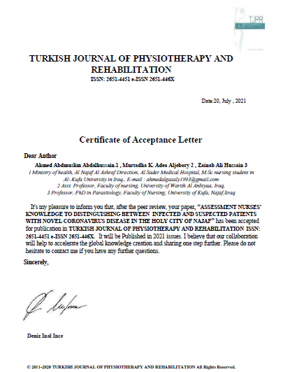 نشر الاستاذ المساعد الدكتور مرتضى غانم الجبوري عميد كلية التمريض بحثاً علمياً في مجلة العلاج الطبيعي والتأهيل الطبي التركيه والتي هي من ضمن مستوعبات سكوب